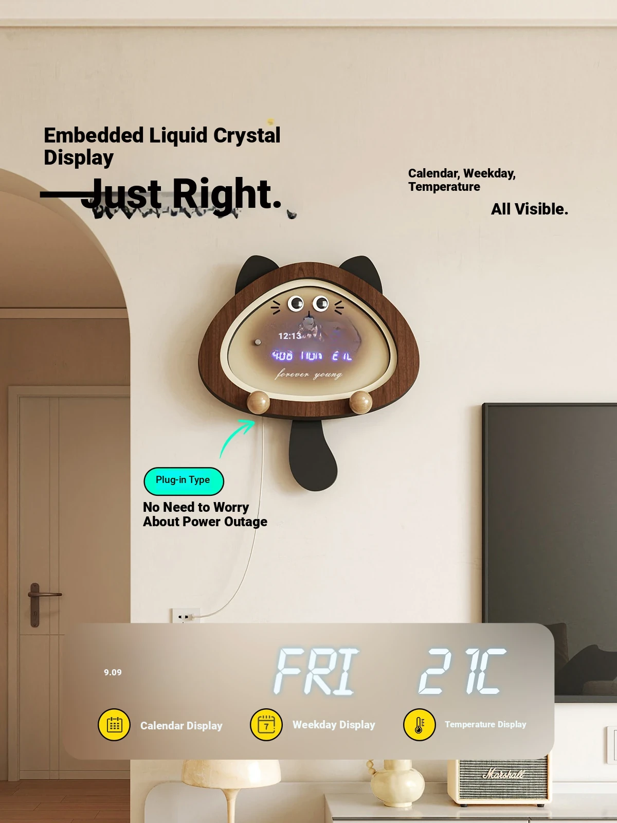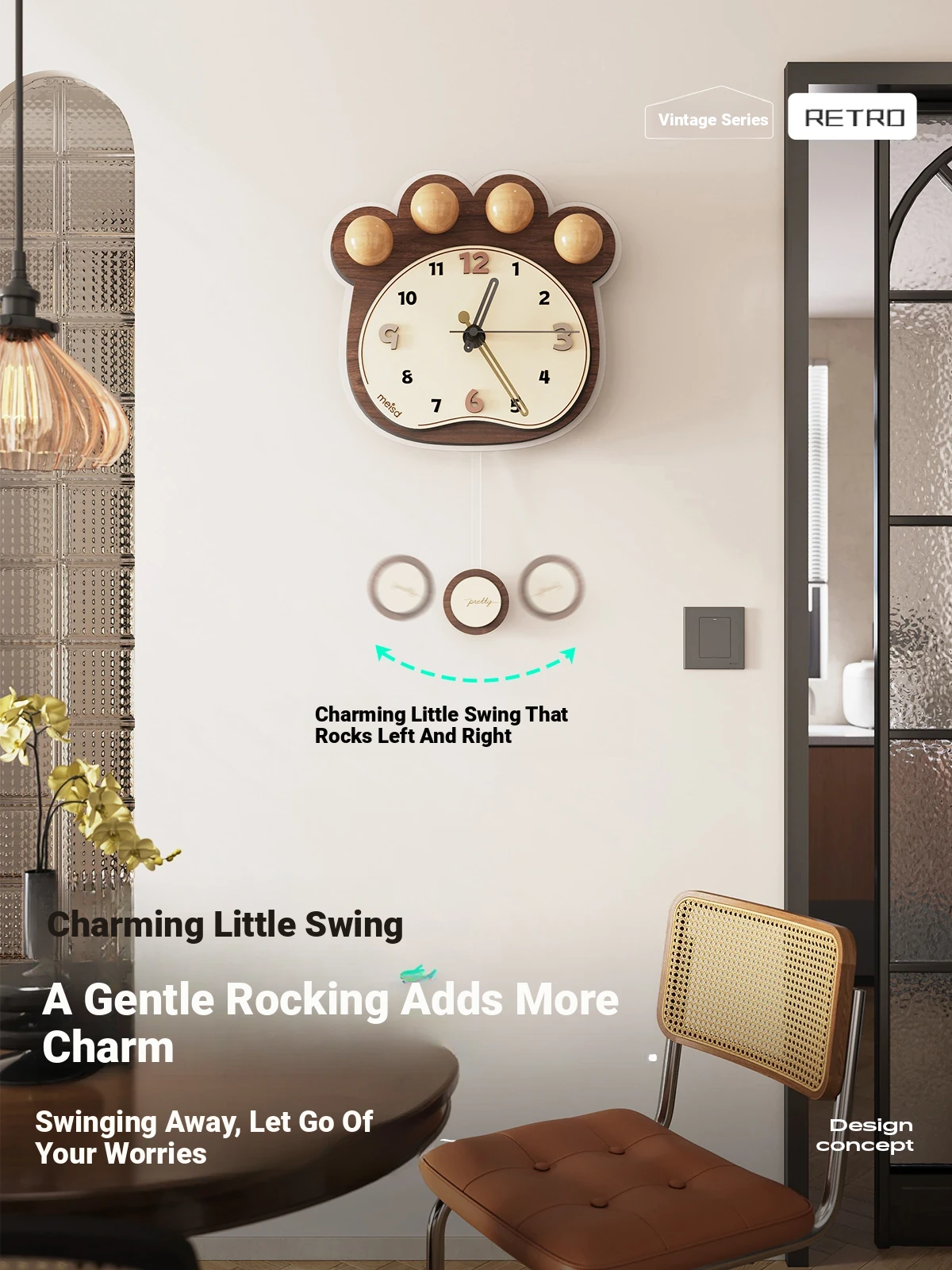Meisida Silent Cat Paw Wall Clock - Minimalist Design for Living Room, Creative Home Decor, 2025 New Model for Bedroom and Wall Hanging