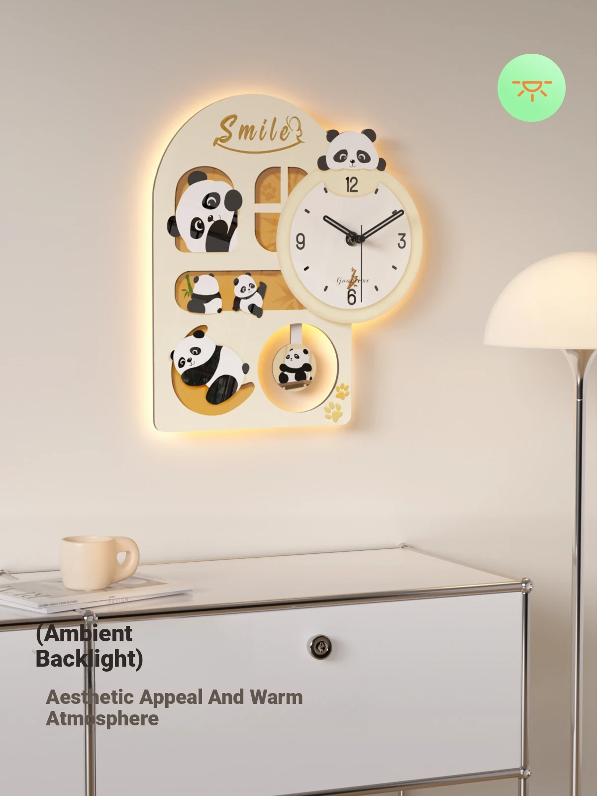 Meisida Panda Wall Clock - Modern Minimalist Design, Silent Cream-colored Clock for Living Room and Dining Room, Creative Decorative Timepiece