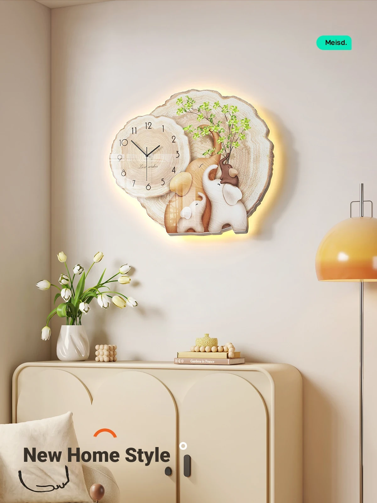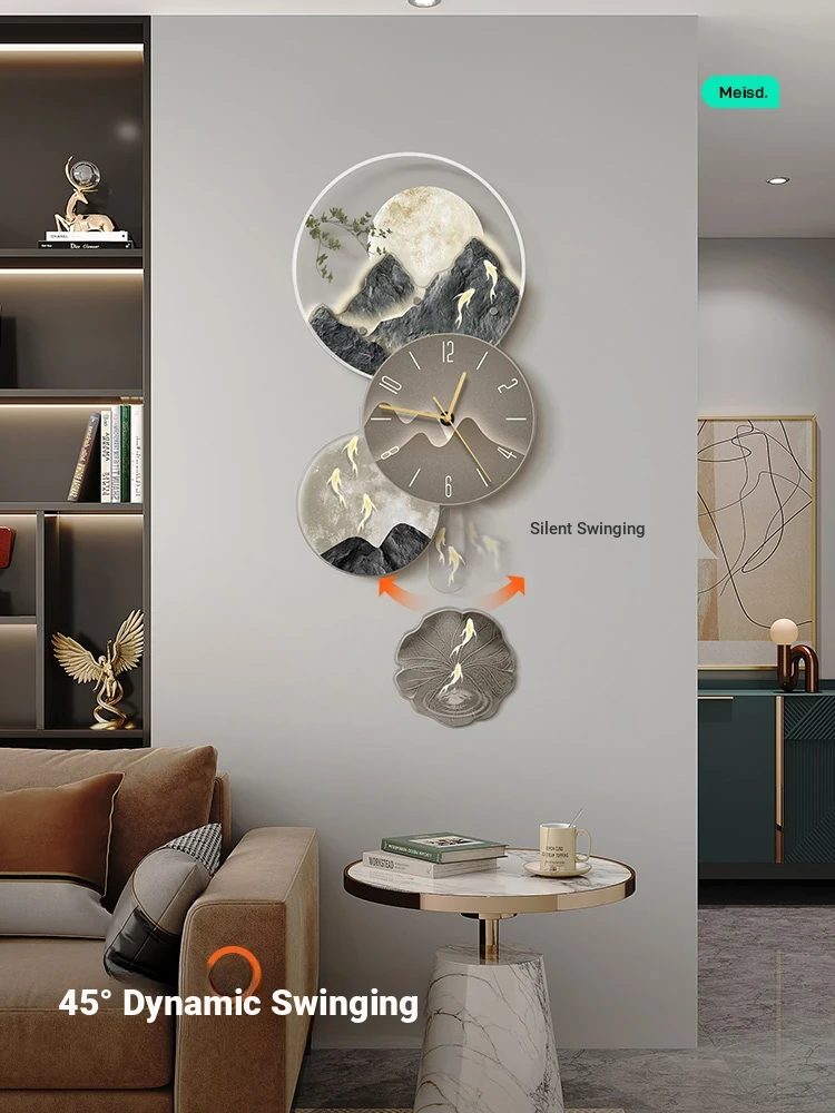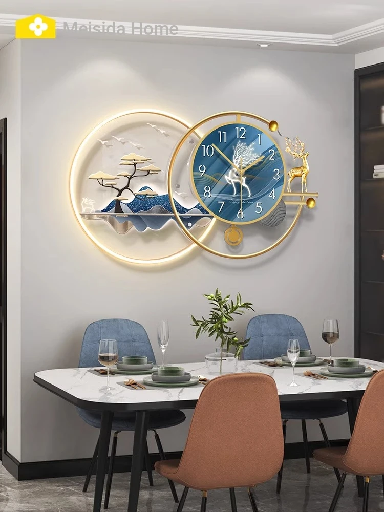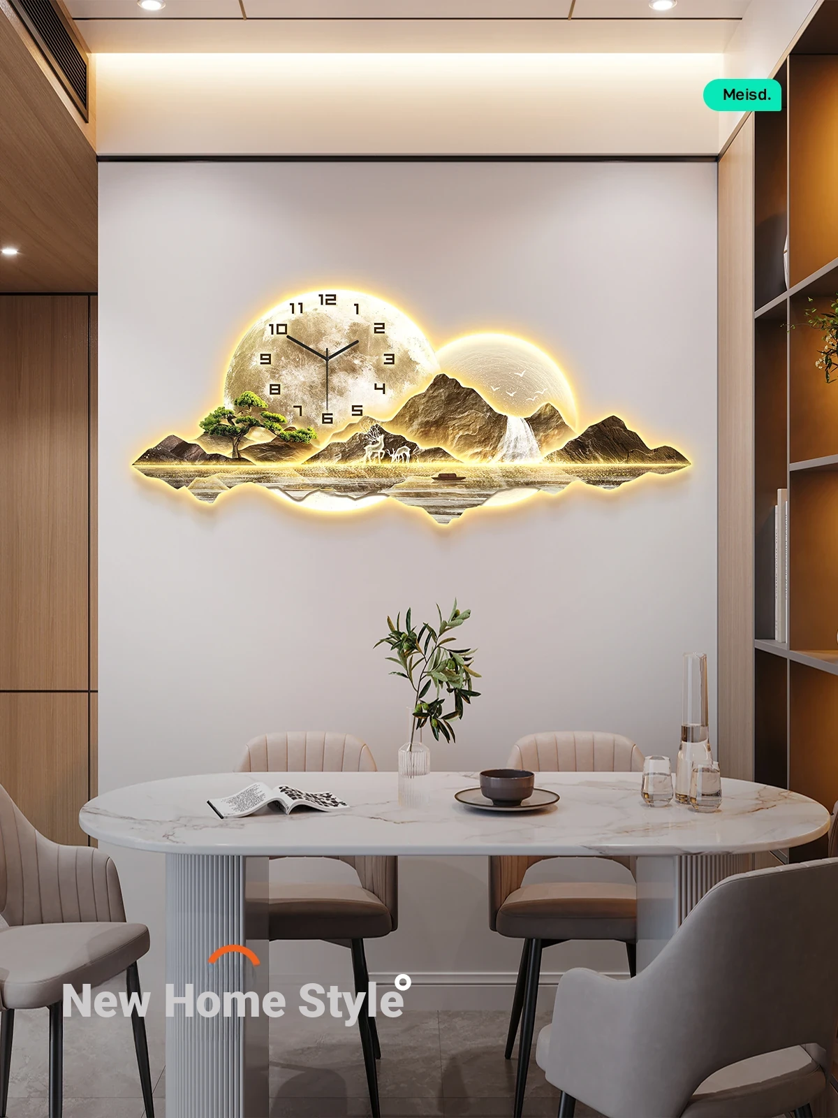 Meisida Silent Wall Clock - 2025 New Chinese Style Creative Clock for Living Room and Dining Room, Perfect Home Decor with Unique Design and Ambient Lighting
