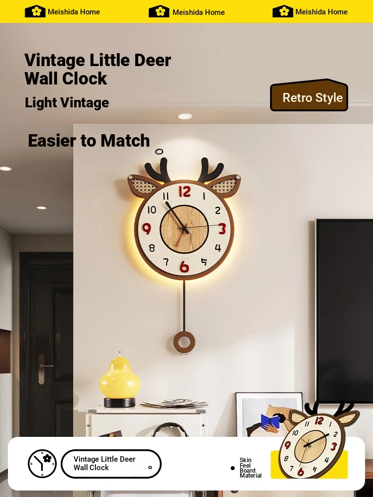 Meisida Retro Pony Wall Clock - 2025 New Modern Minimalist Creative Timepiece for Living Room, Stylish Wall Decor with Unique Light Design