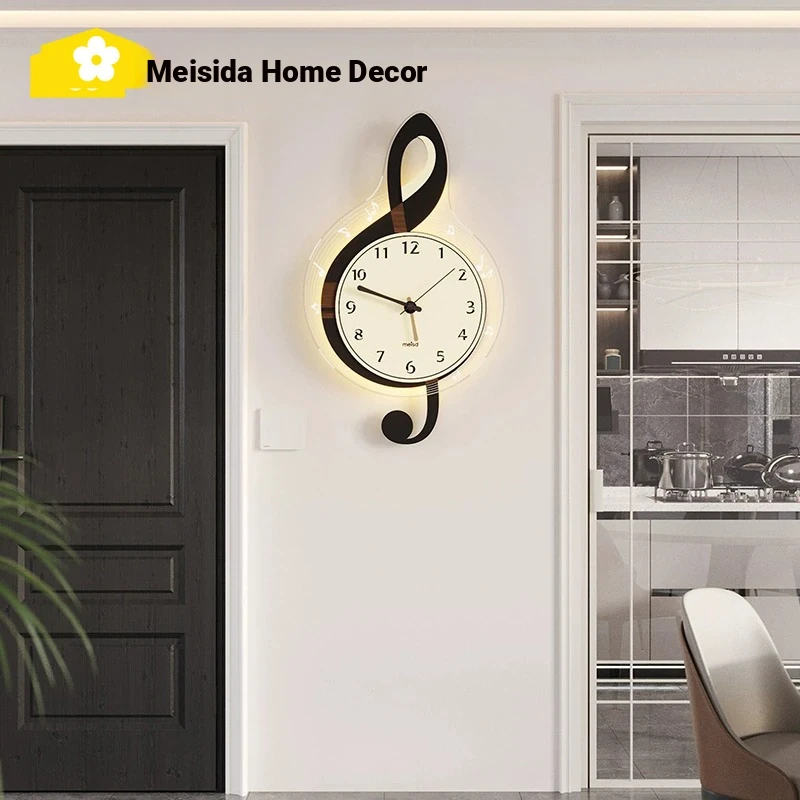 Meisida Creative Musical Note Wall Clock - 2024 New Minimalist Modern Home Clock for Living Room and Dining Room Art Décor - Stylish and Functional Timepiece