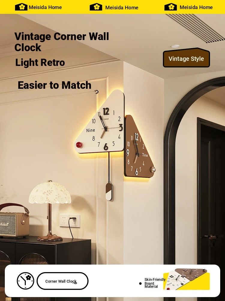 Meisida 2025 New Corner Wall Clock - Double-Sided Hanging Clock for Living Room and Home Décor, Unique Design for Space-Saving and Stylish Timekeeping