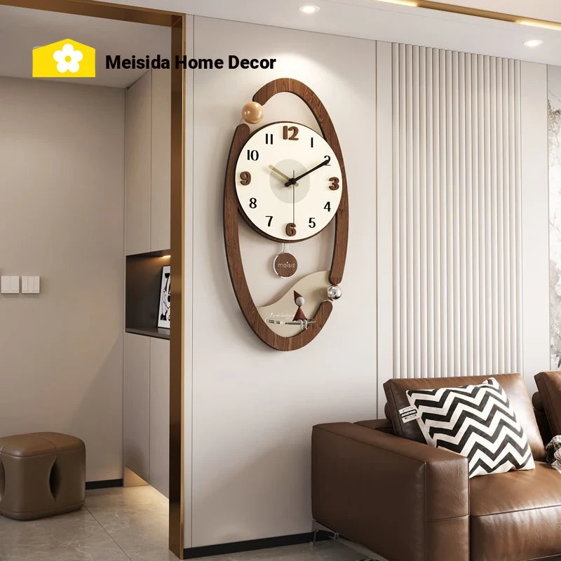 Meisida Wall Clock - 2024 New Minimalist Modern Vintage Creative Design, Silent Home Clock for Living Room, Elegant Atmosphere