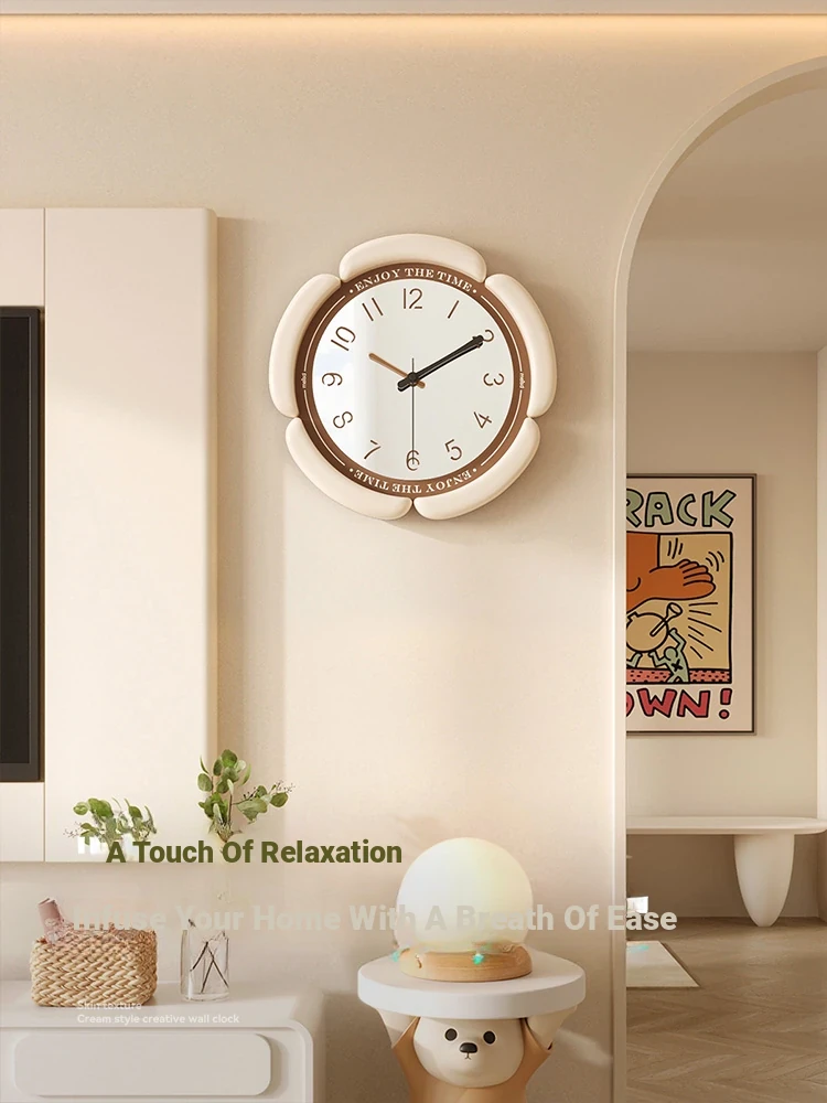 2025 New Trendy Cream Style Wall Clock - Creative Hanging Calendar Clock for Living Room and Dining Room, Perfect for Home Decor