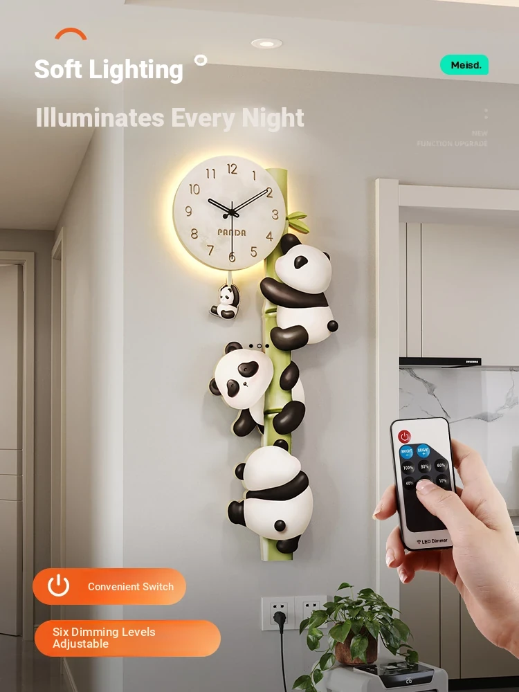 Meisida Bamboo Panda Wall Clock - 2025 New Creative Design for Living Room Decoration, Elegant Home Dining Room Timepiece
