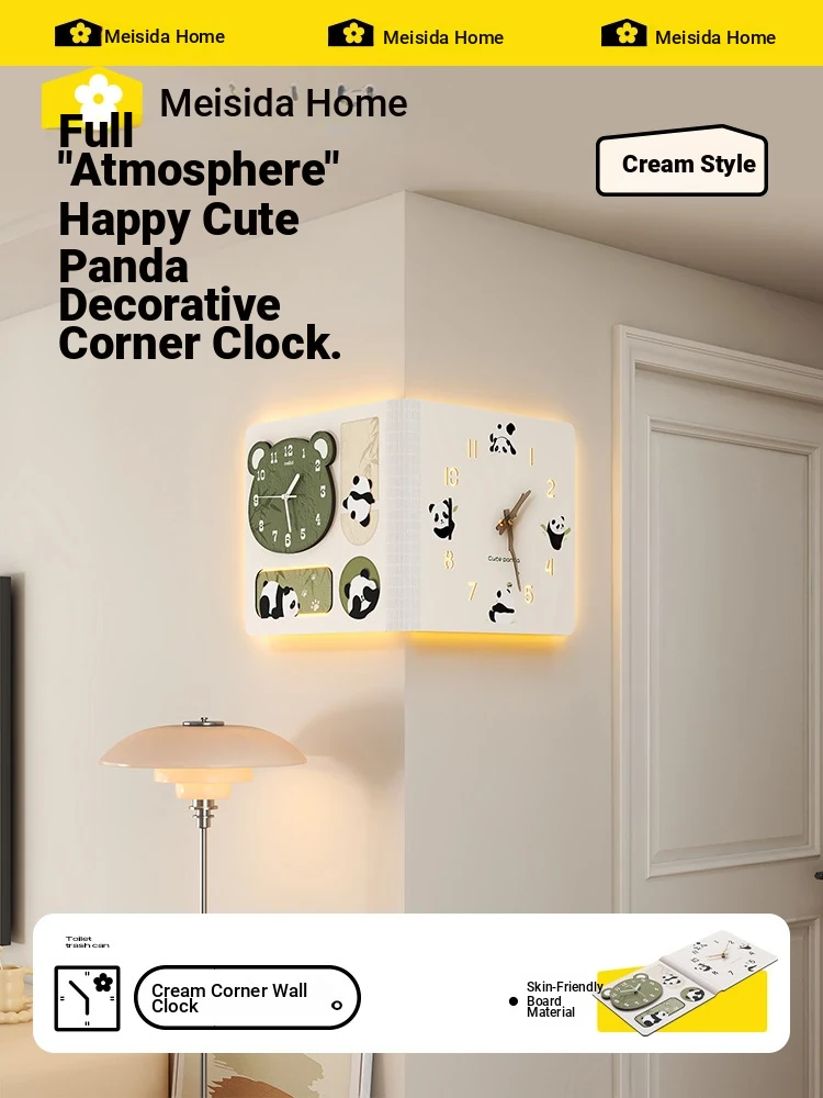 Meisida Panda Corner Clock - 2025 New Double-Sided Silent Wall Clock for Living Room, Minimalist Design for Home Decor