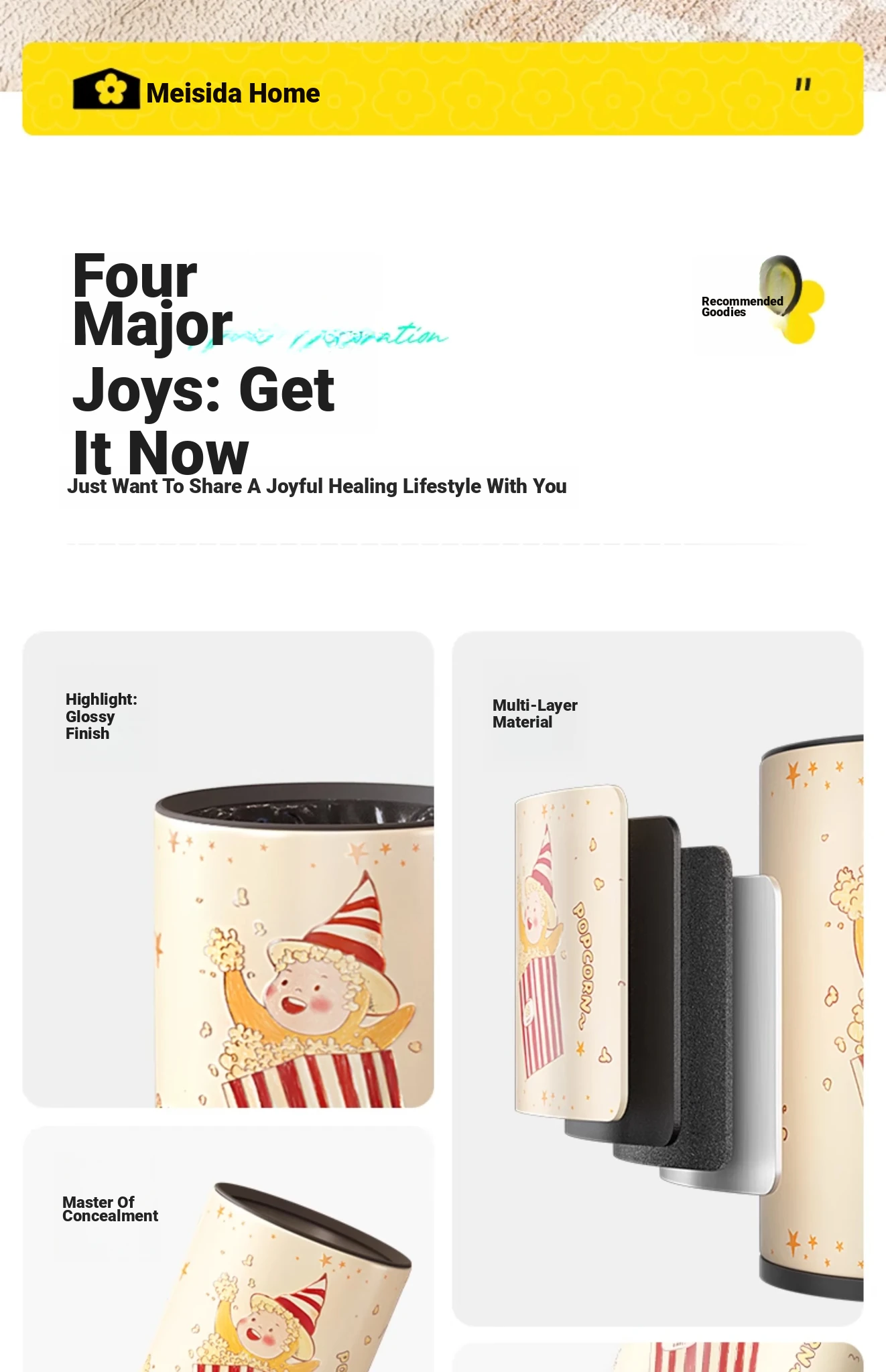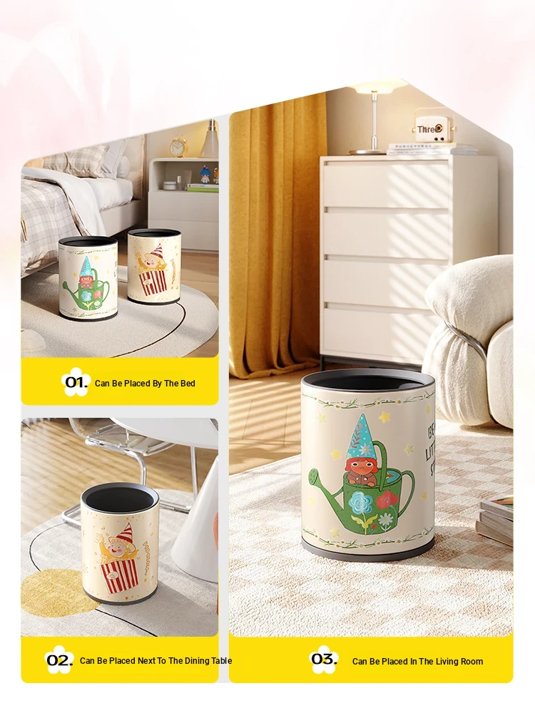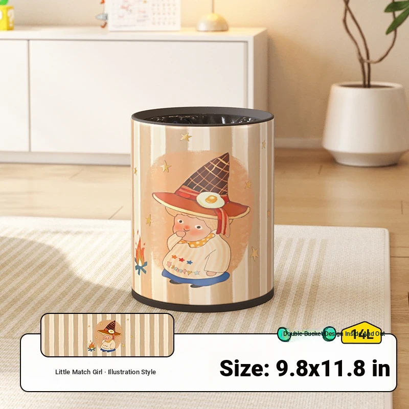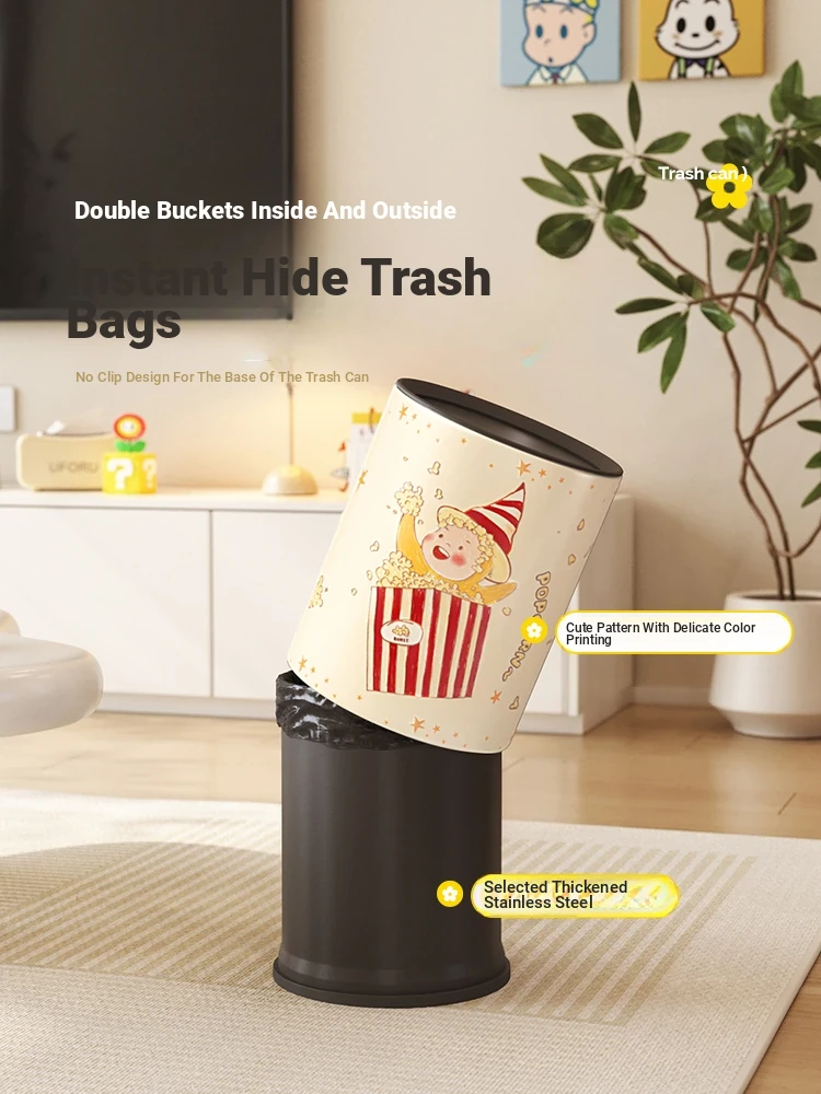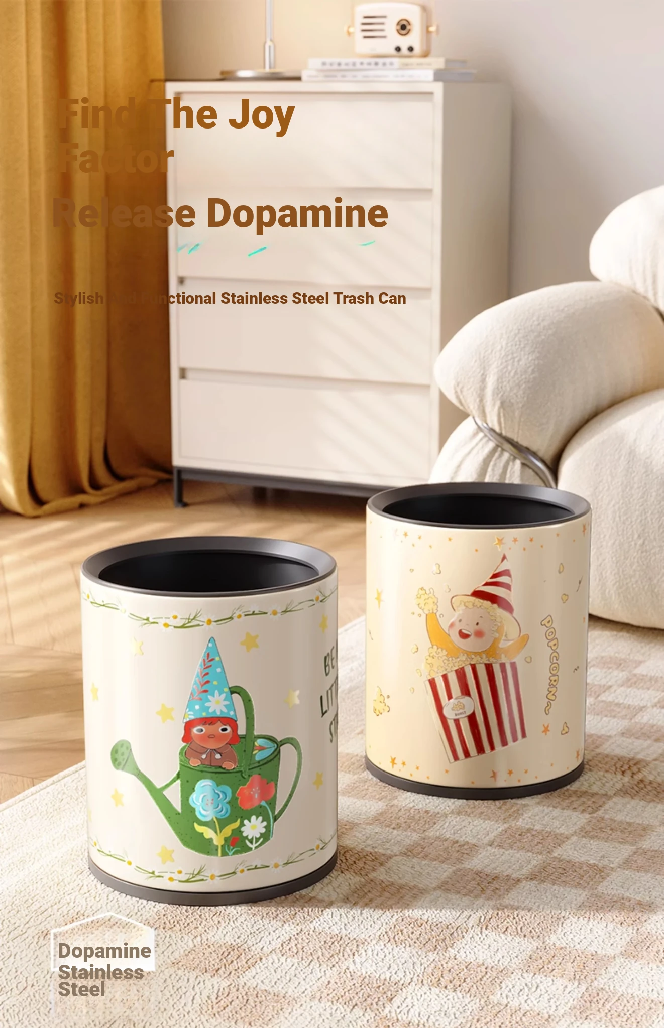 Meisida Large Capacity Stainless Steel Trash Can - Stylish and Durable 2025 New Design for Home, Living Room, Bedroom, Kitchen, and Cartoon Style. Perfect for Efficient Waste Management!