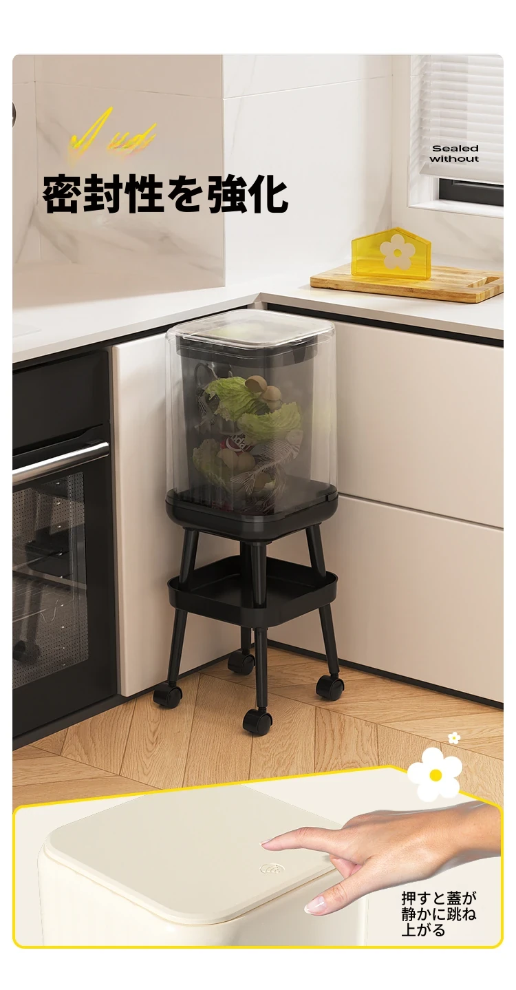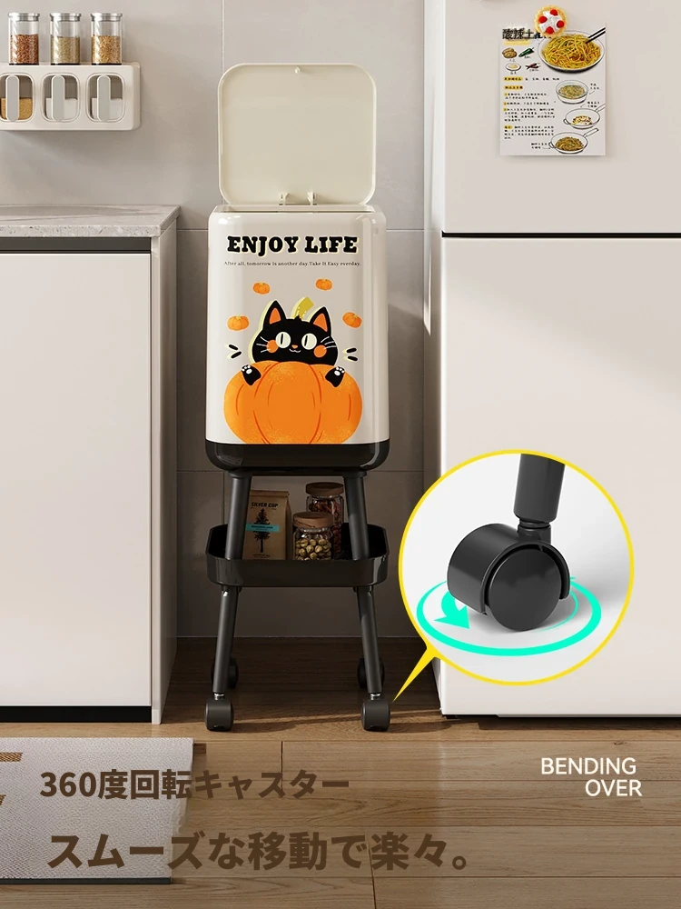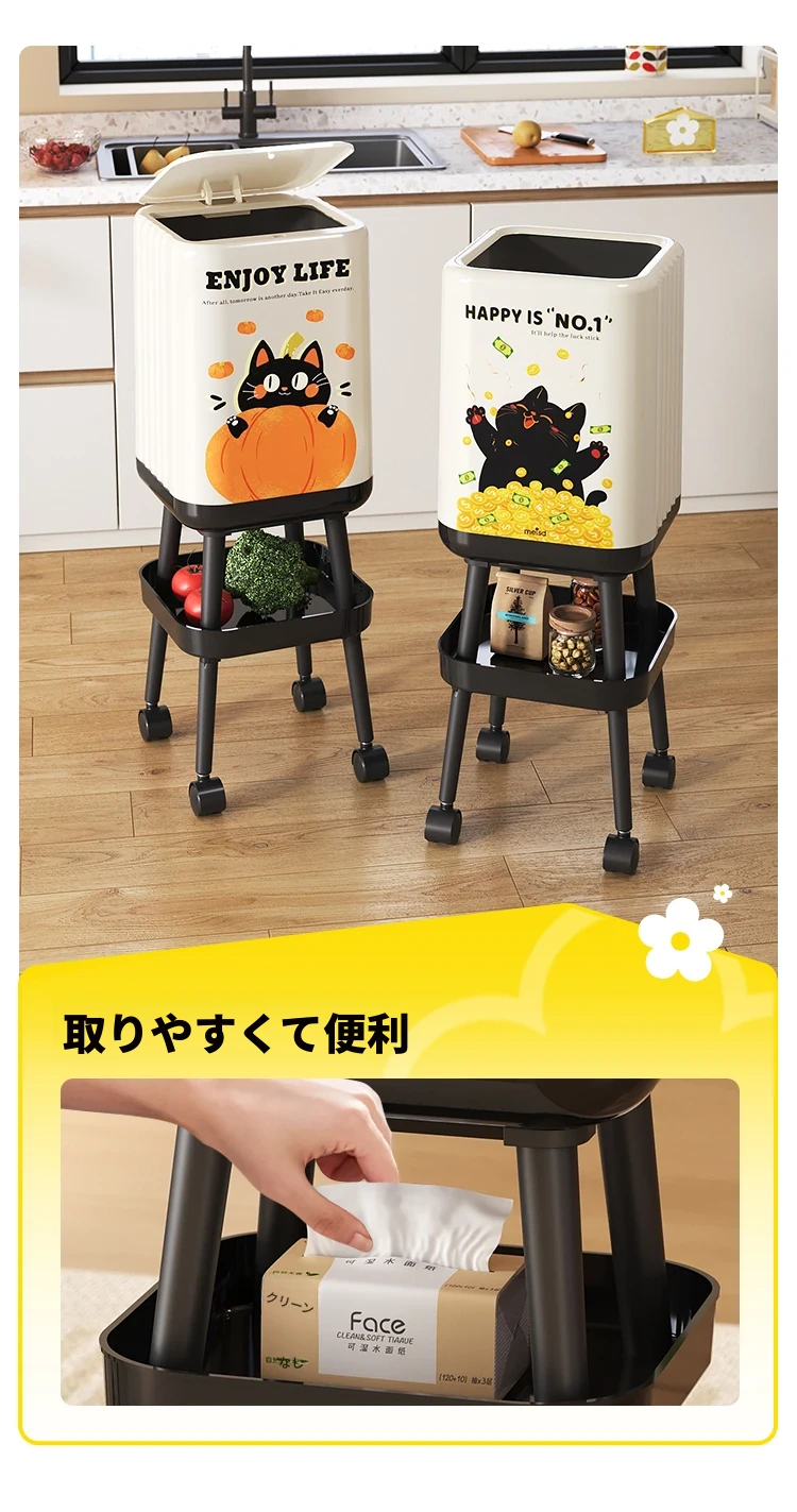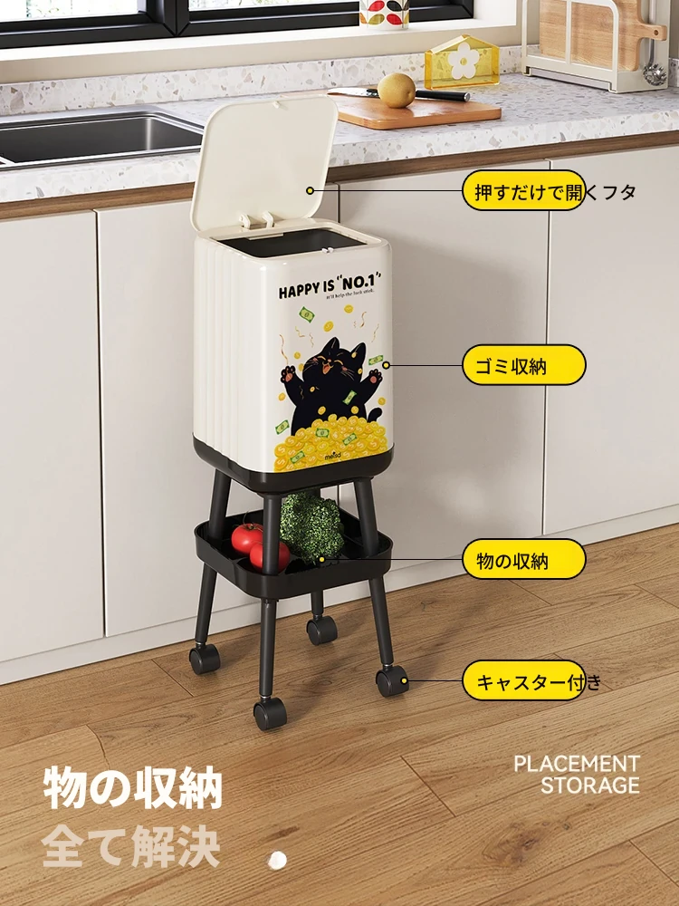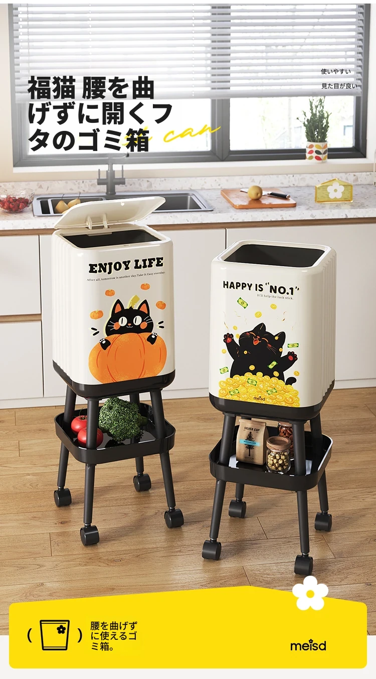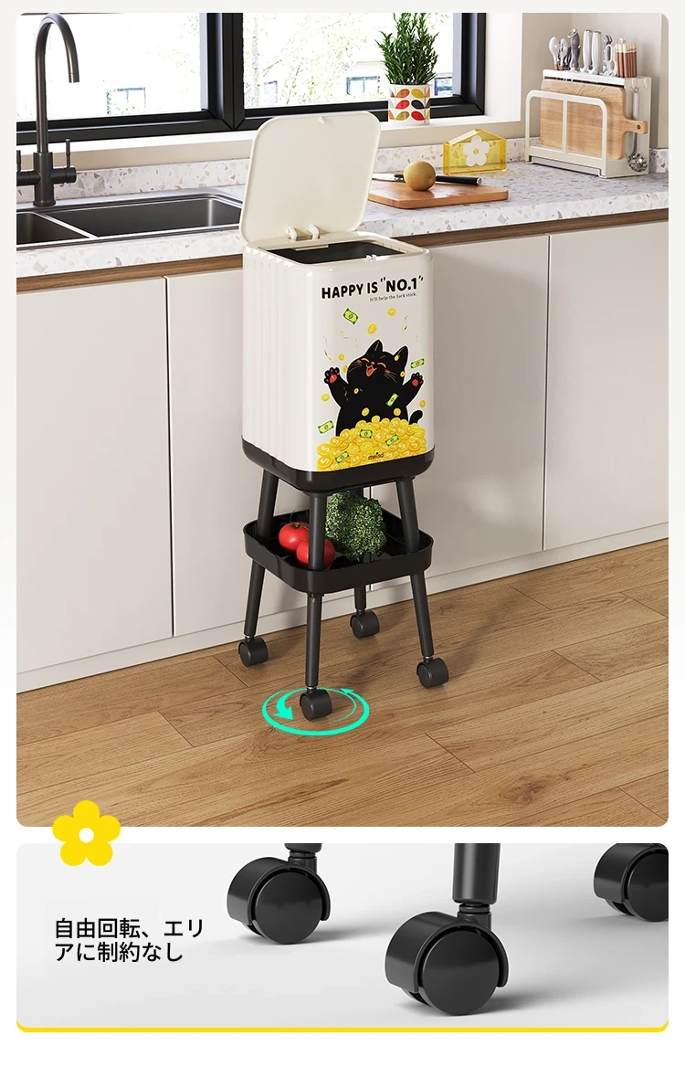 美世达キッチンゴミ箱 2025年新モデル!スタイリッシュで高品質、膝を曲げずに使える便利なフタ付き移動式衛生ゴミ箱。リビングにもぴったり!あなたの生活をより快適にします。