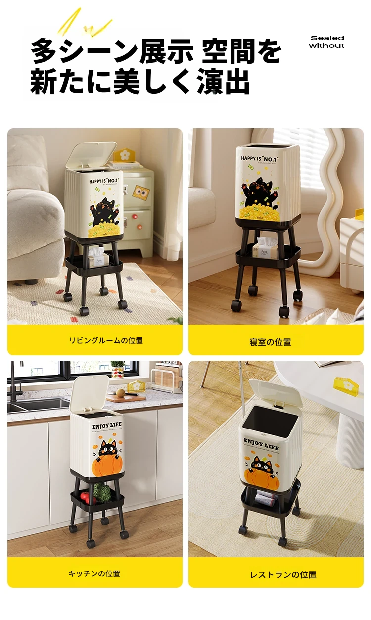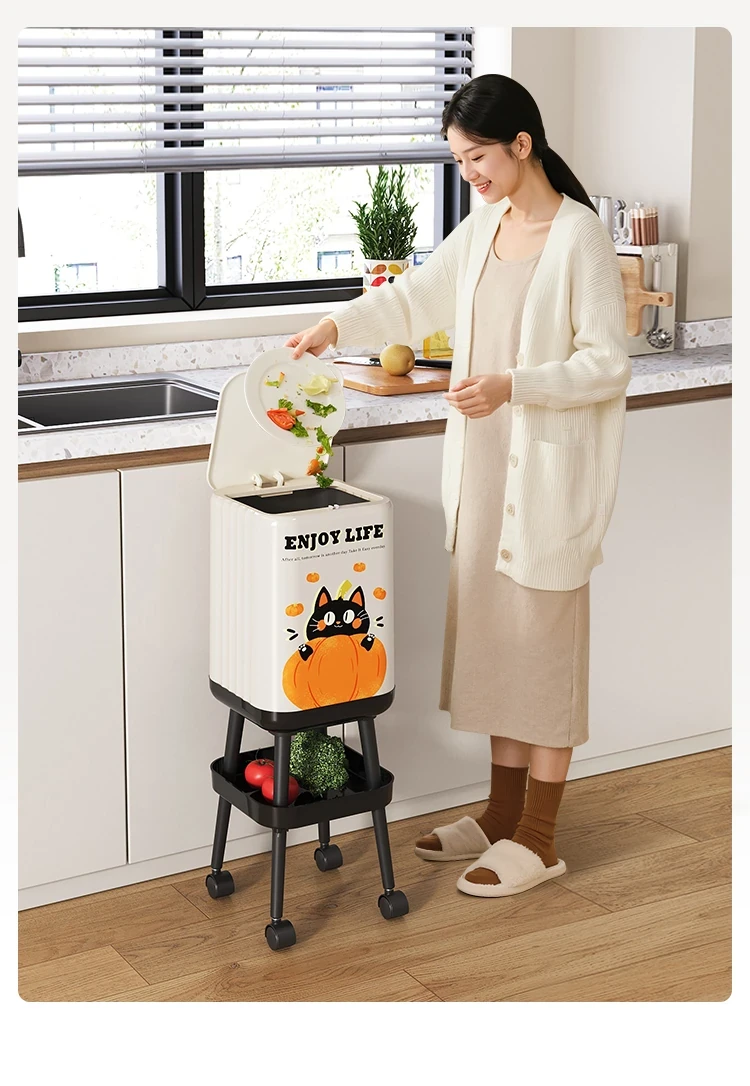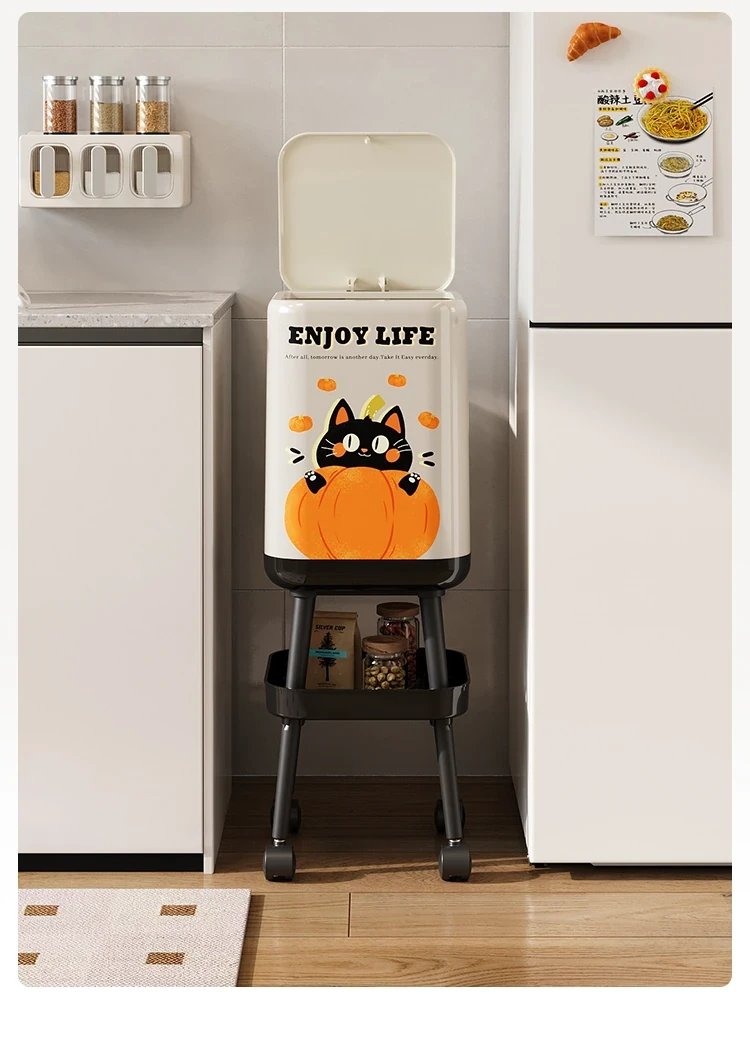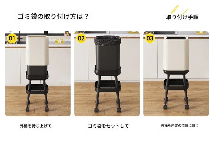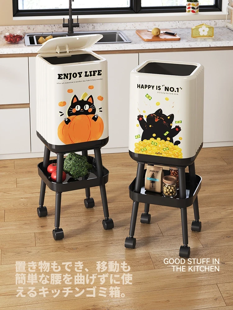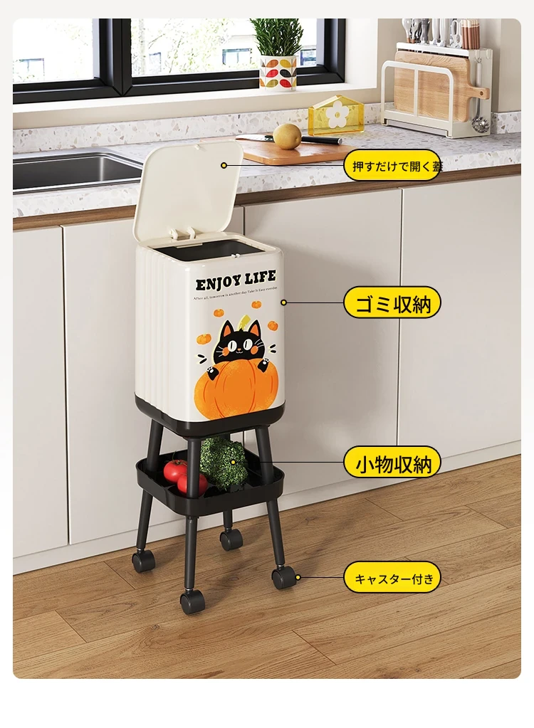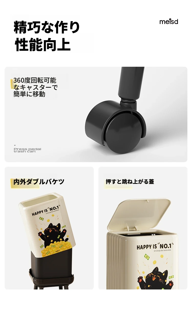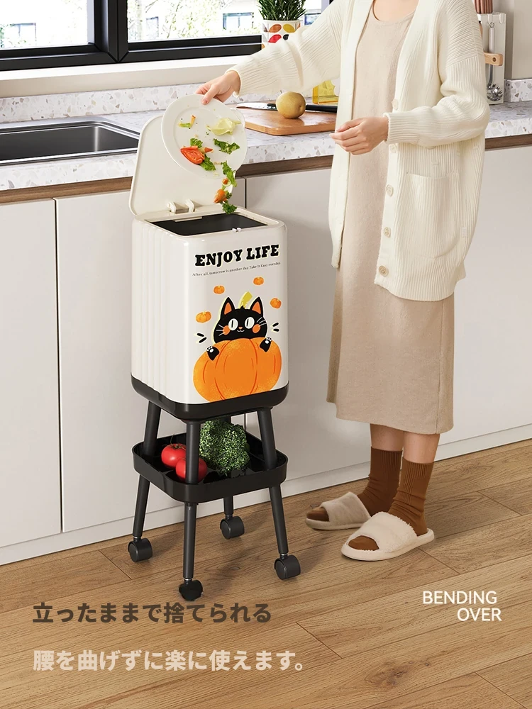 美世达キッチンゴミ箱 2025年新モデル!スタイリッシュで高品質、膝を曲げずに使える便利なフタ付き移動式衛生ゴミ箱。リビングにもぴったり!あなたの生活をより快適にします。
