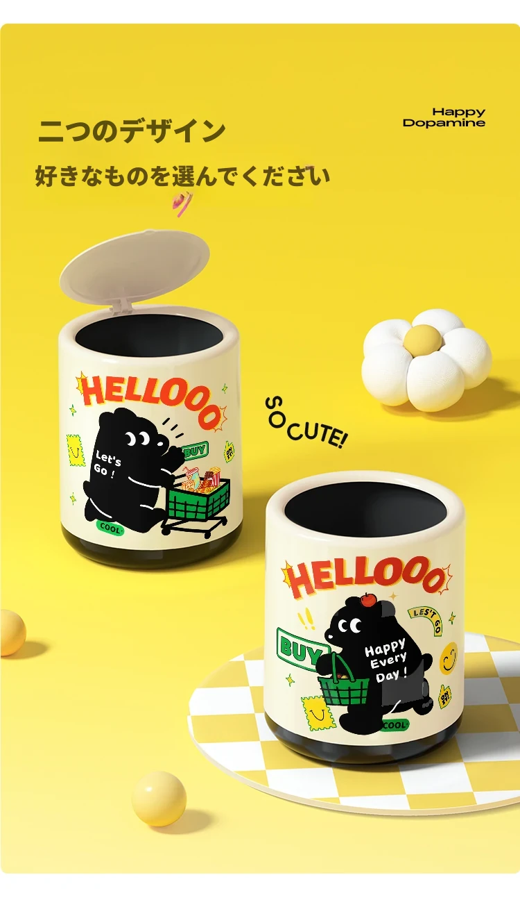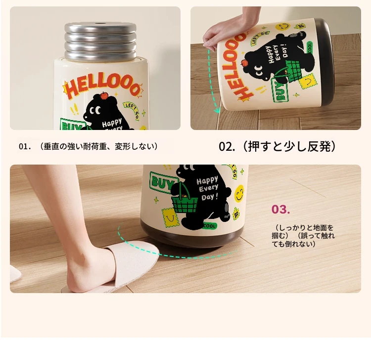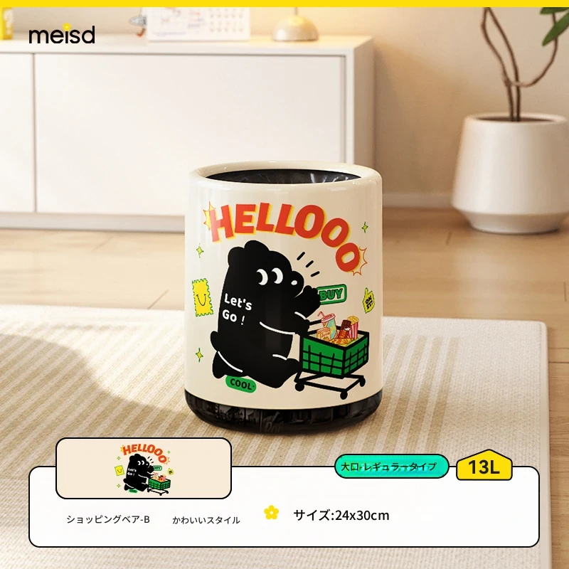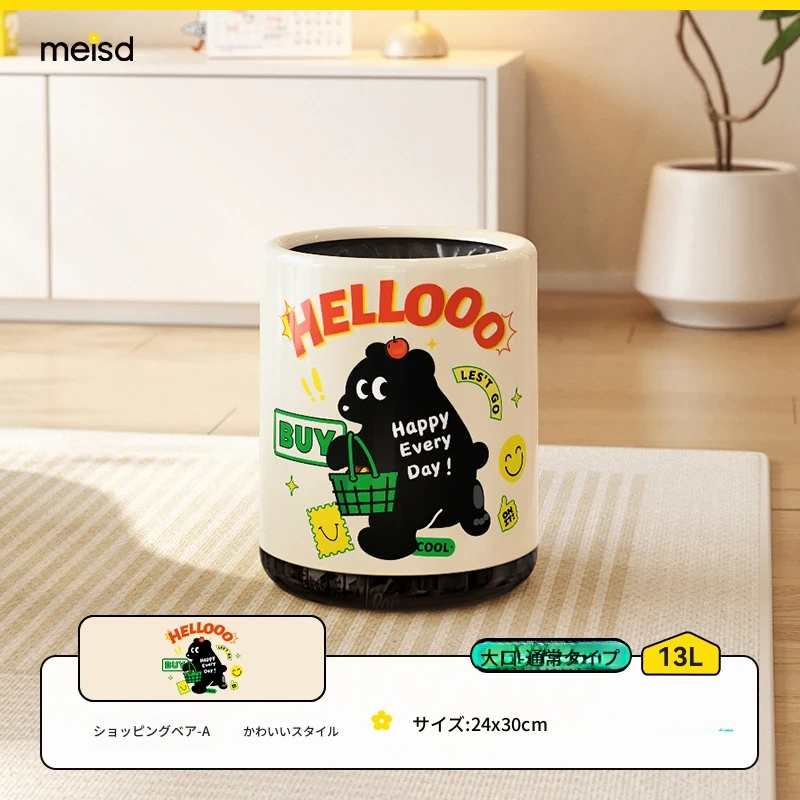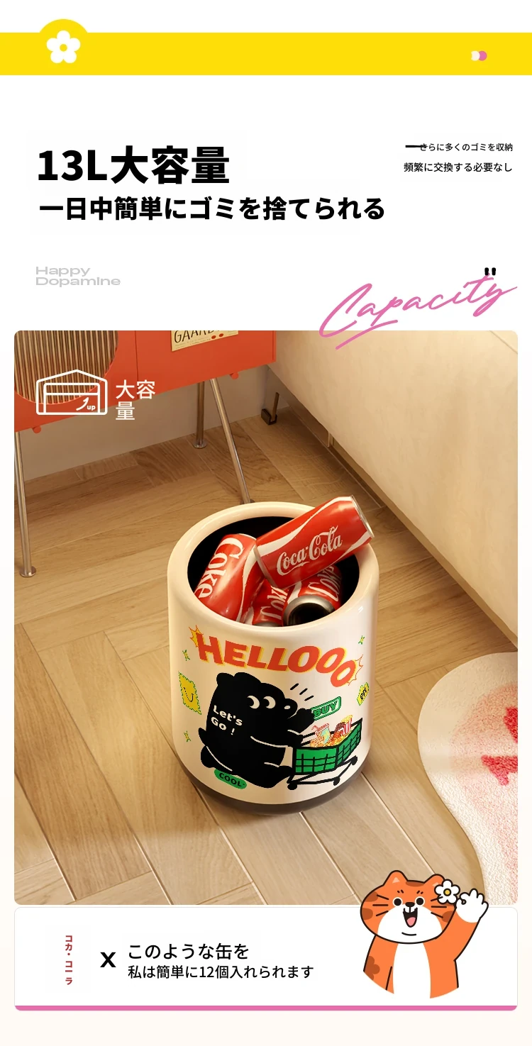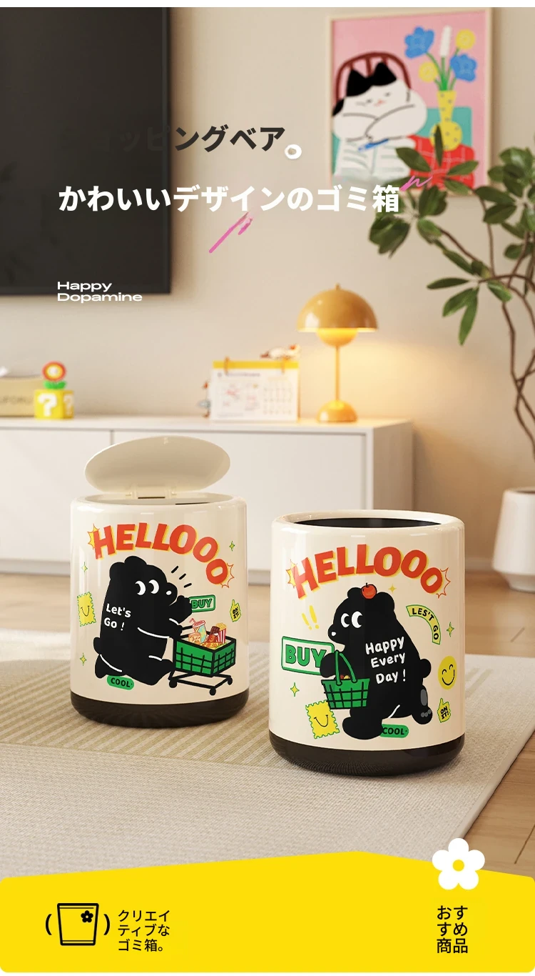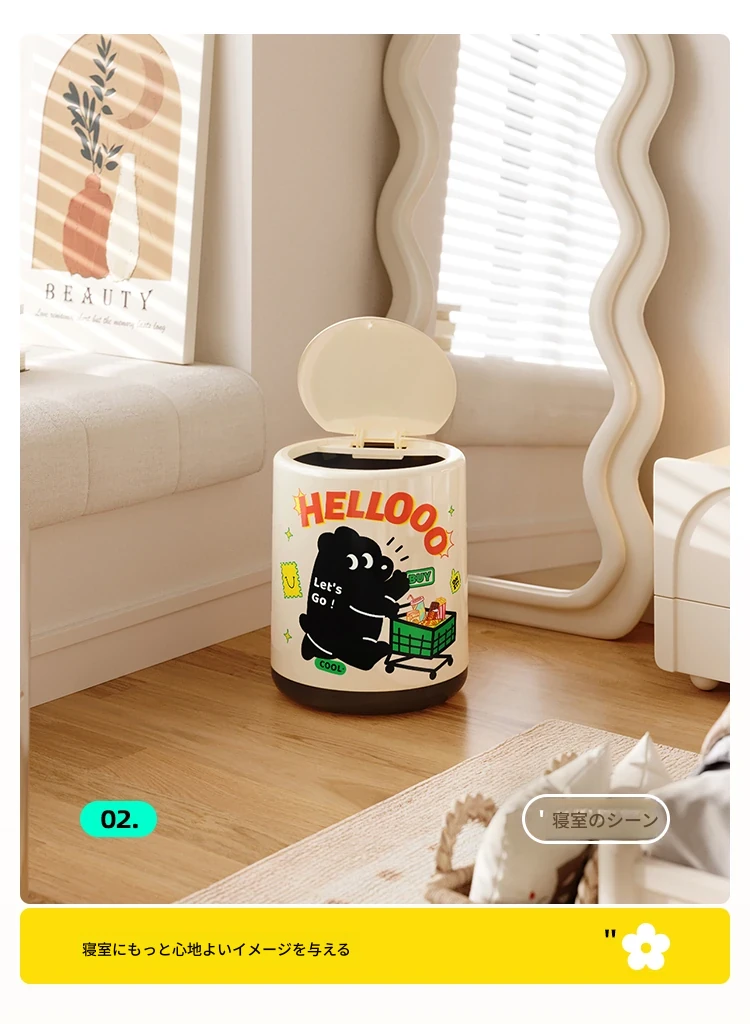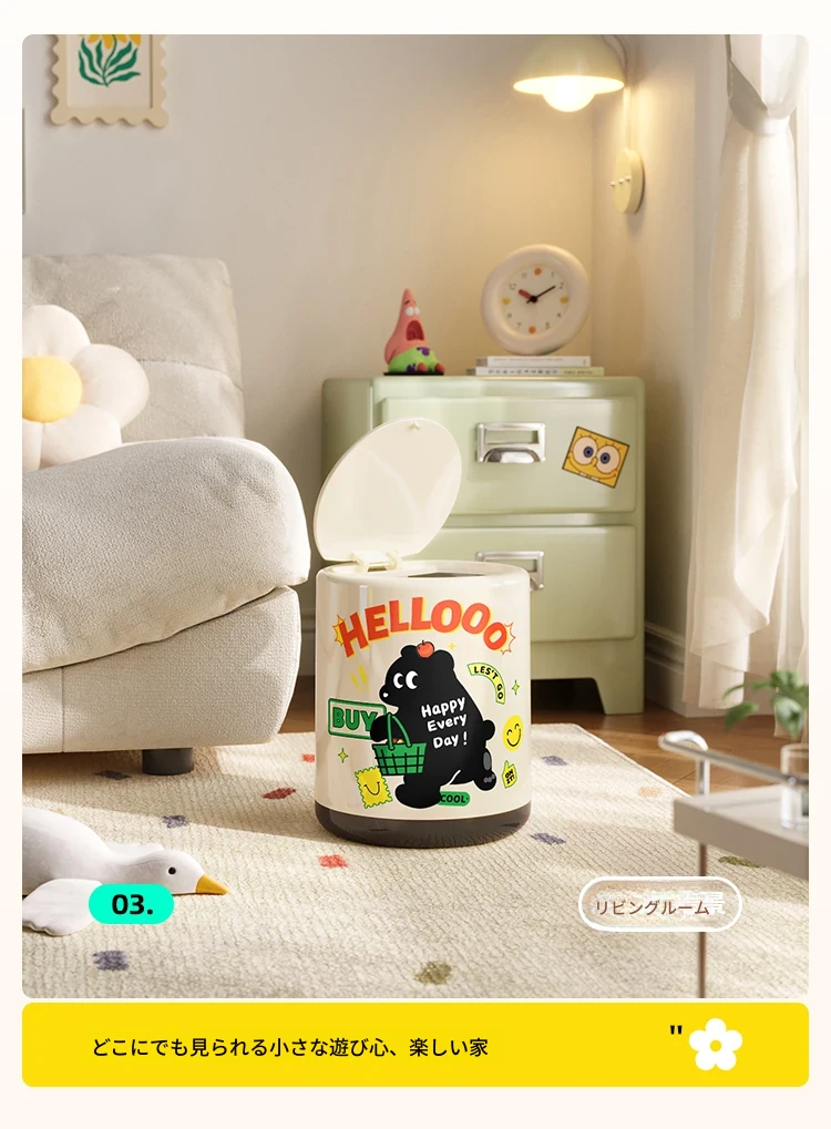 メイシダ創意ゴミ箱|可愛いカートゥーンデザインのプッシュ式蓋付き|リビングやバスルームにぴったりな収納バケツで、楽しくお片付け!