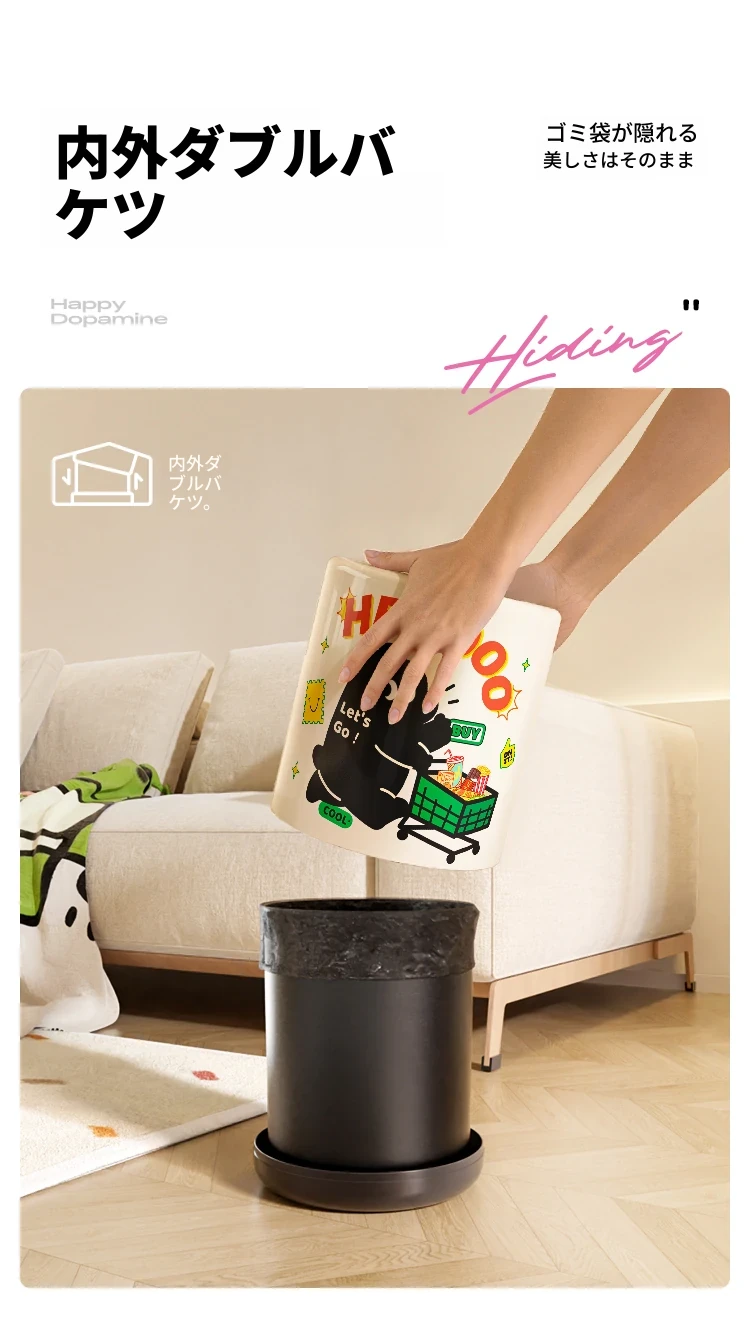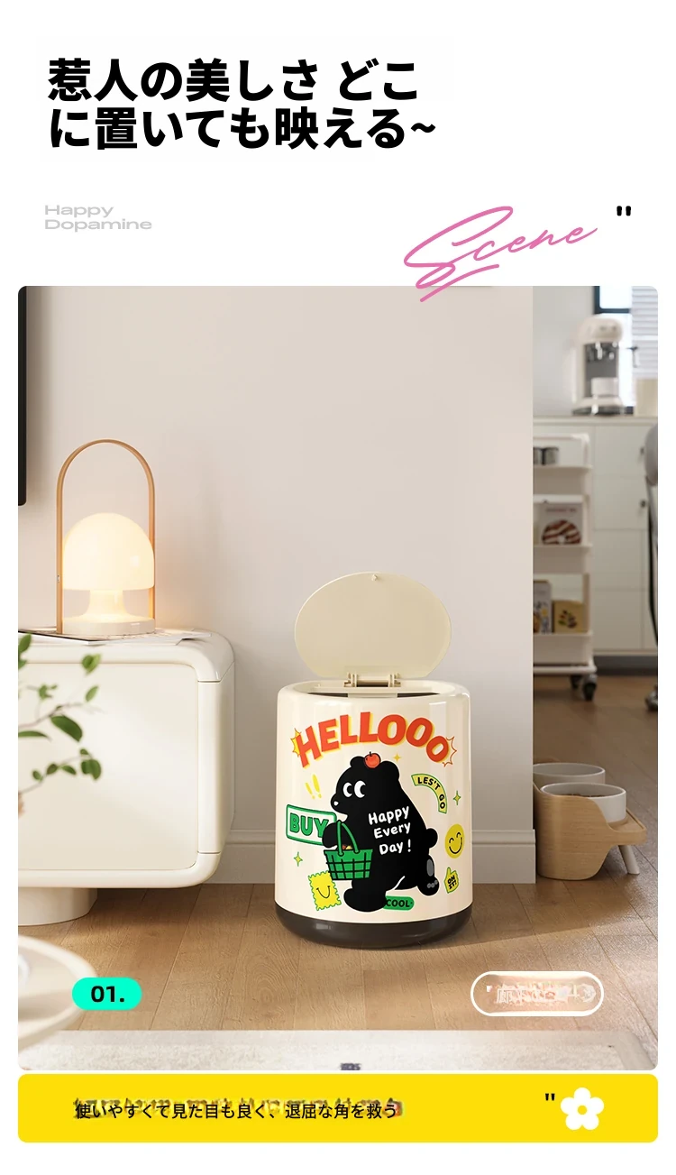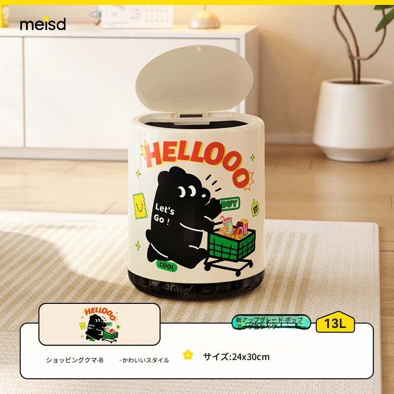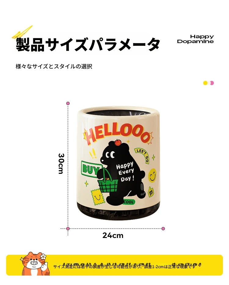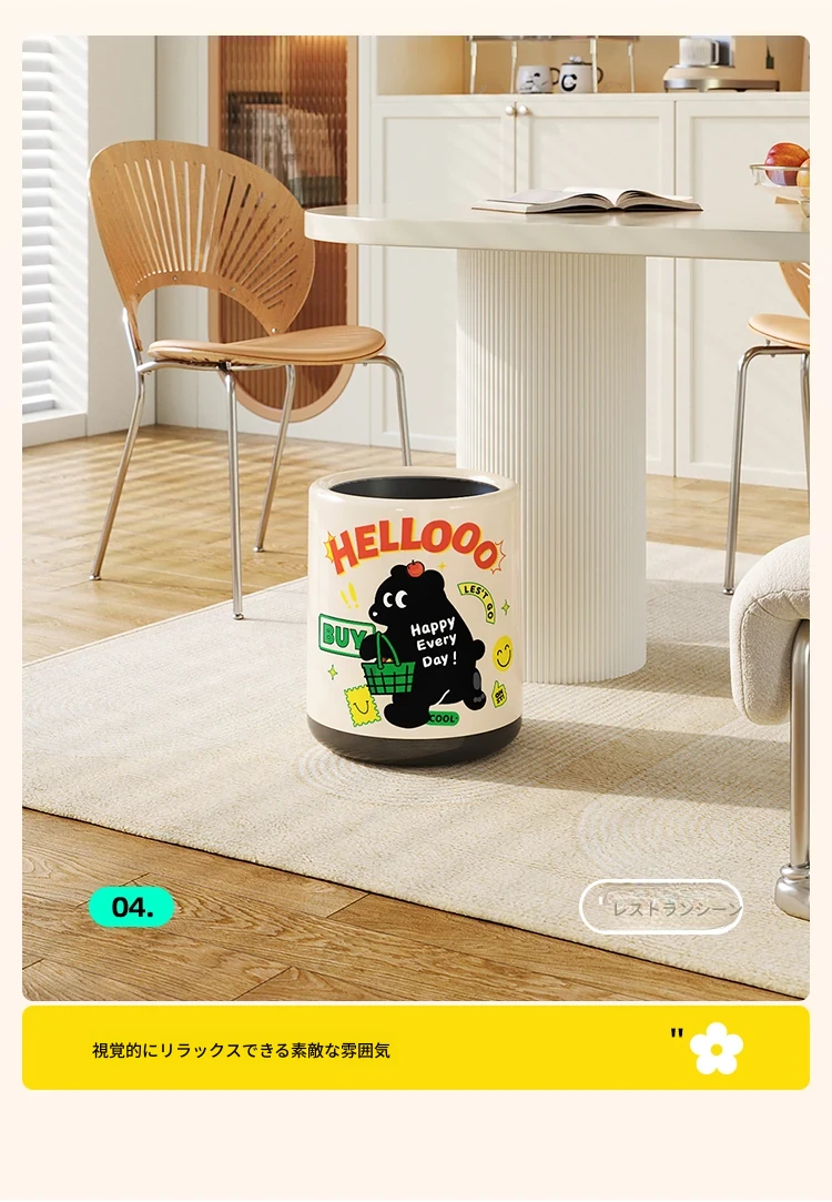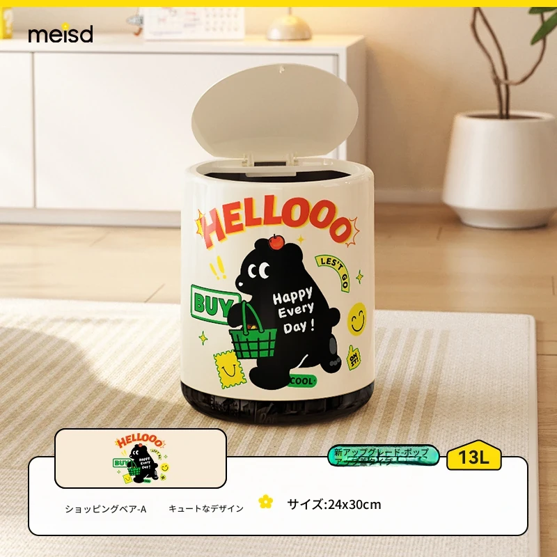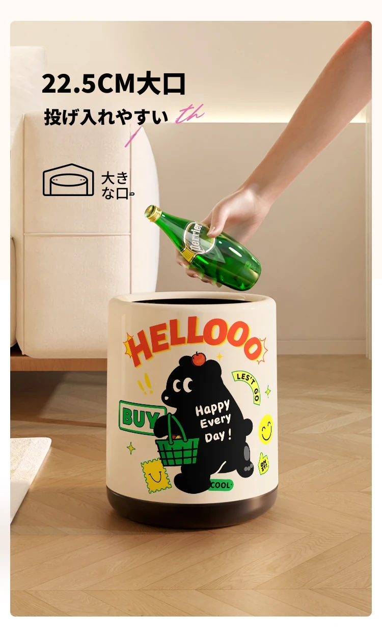 メイシダ創意ゴミ箱|可愛いカートゥーンデザインのプッシュ式蓋付き|リビングやバスルームにぴったりな収納バケツで、楽しくお片付け!
