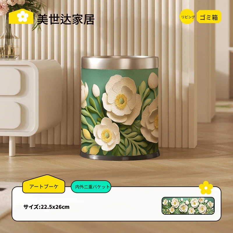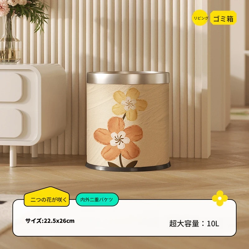 可愛い花々 ⭐ レザー製バケツ ⭐ 内外ダブルバケツ