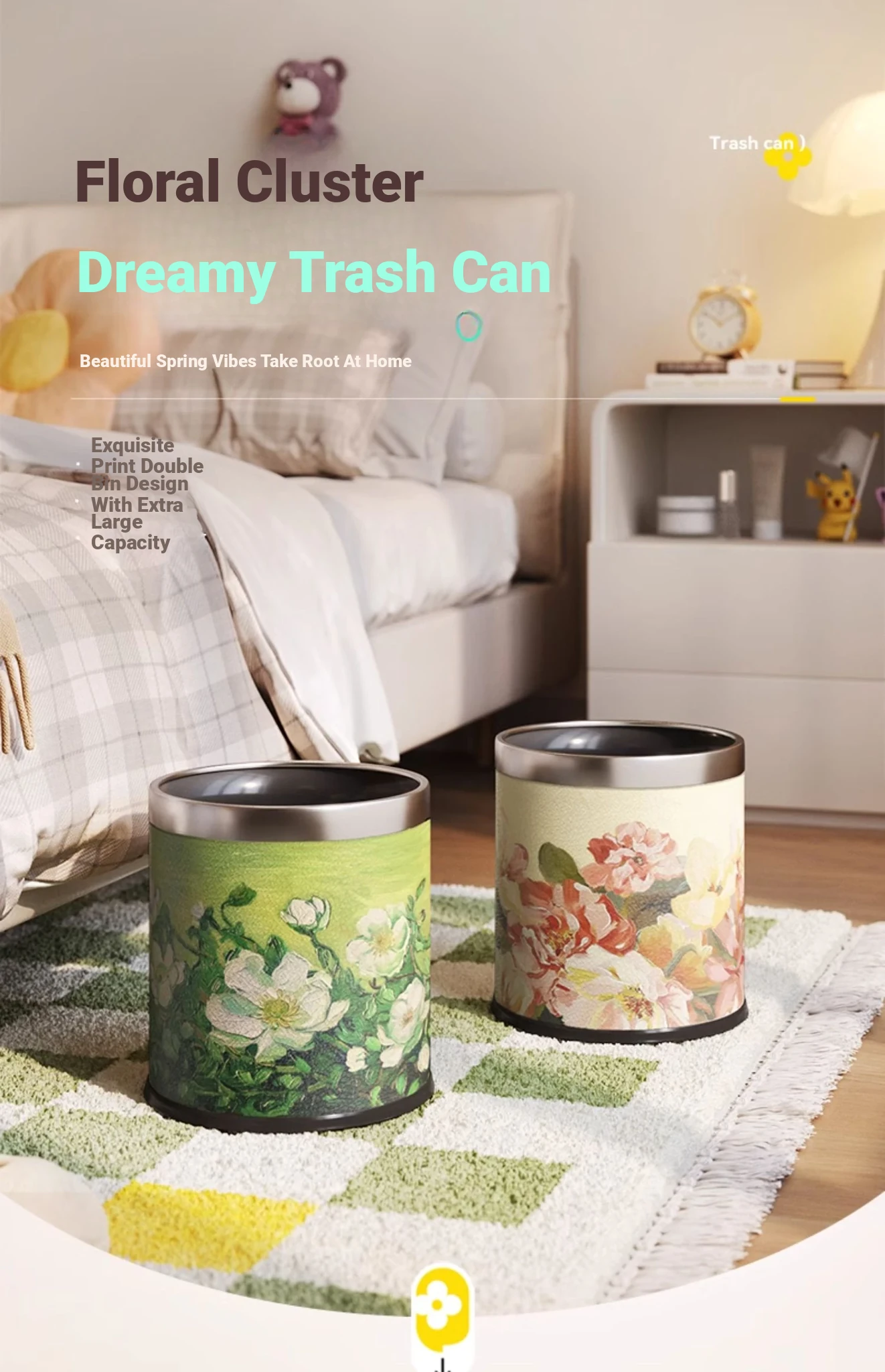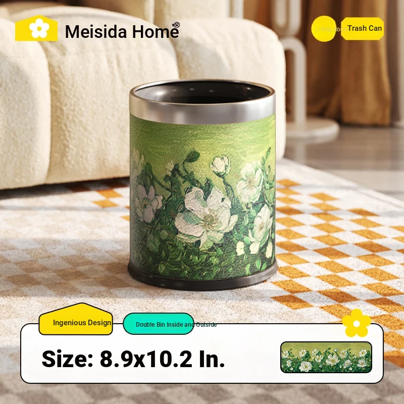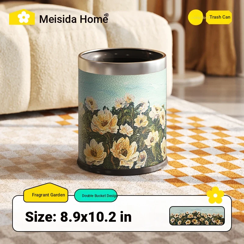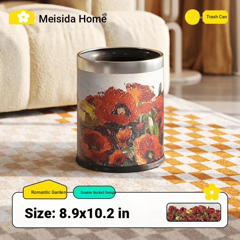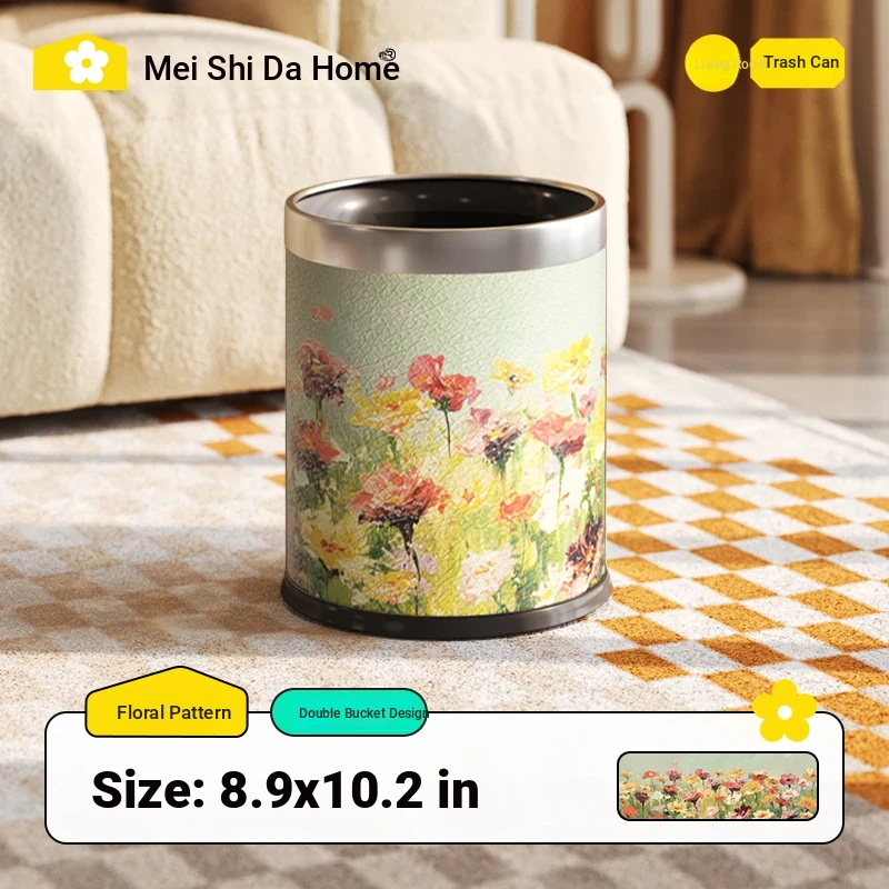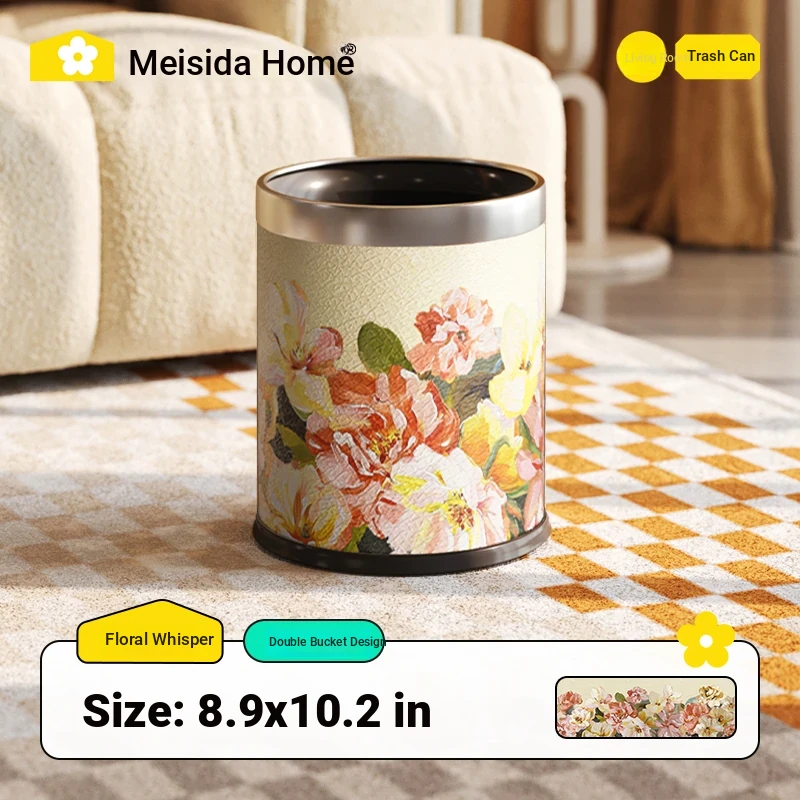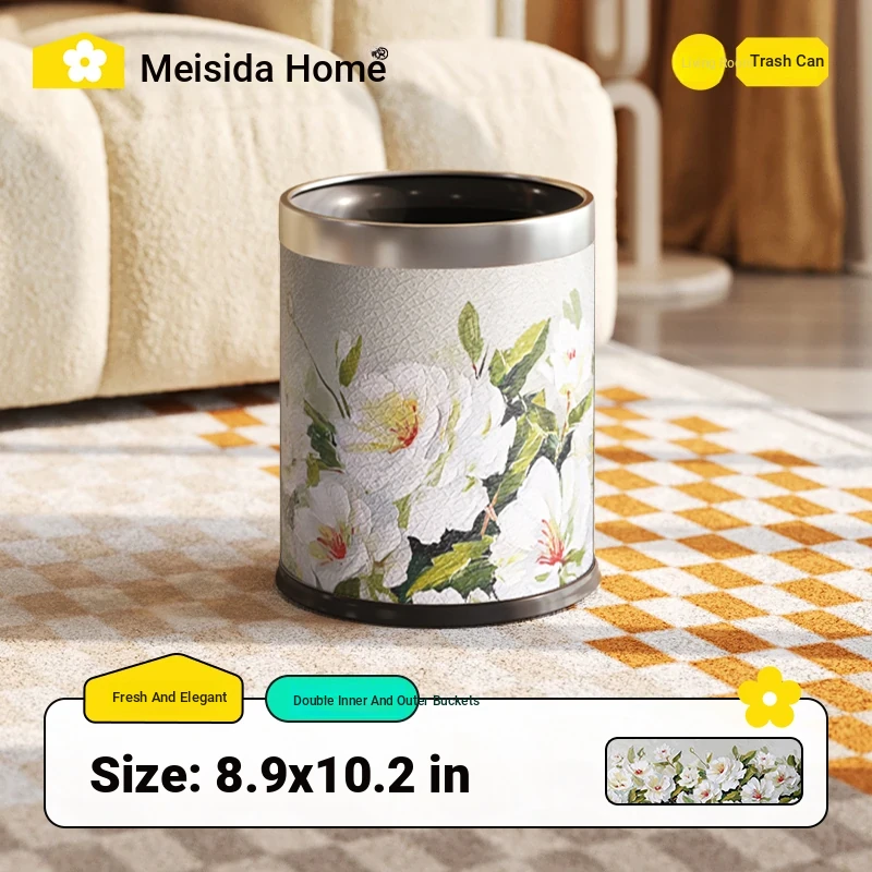 Meisida Vintage Floral Trash Can – Stylish and High-Quality Design for Home, Living Room, Bedroom, and Bathroom – Perfectly Blends Functionality with Aesthetic Appeal