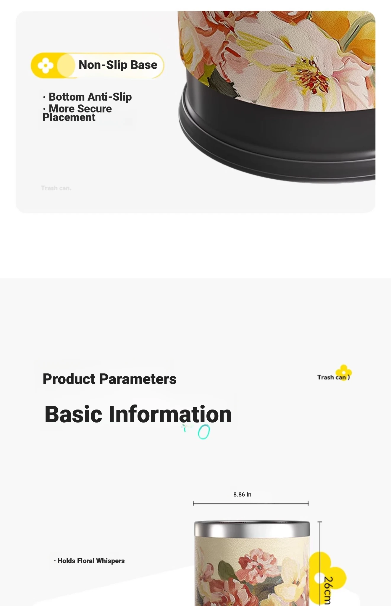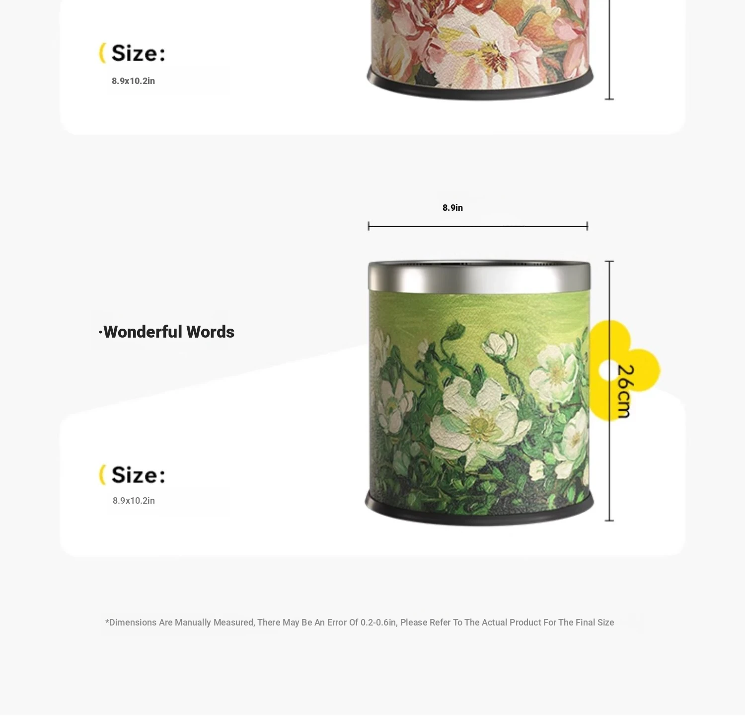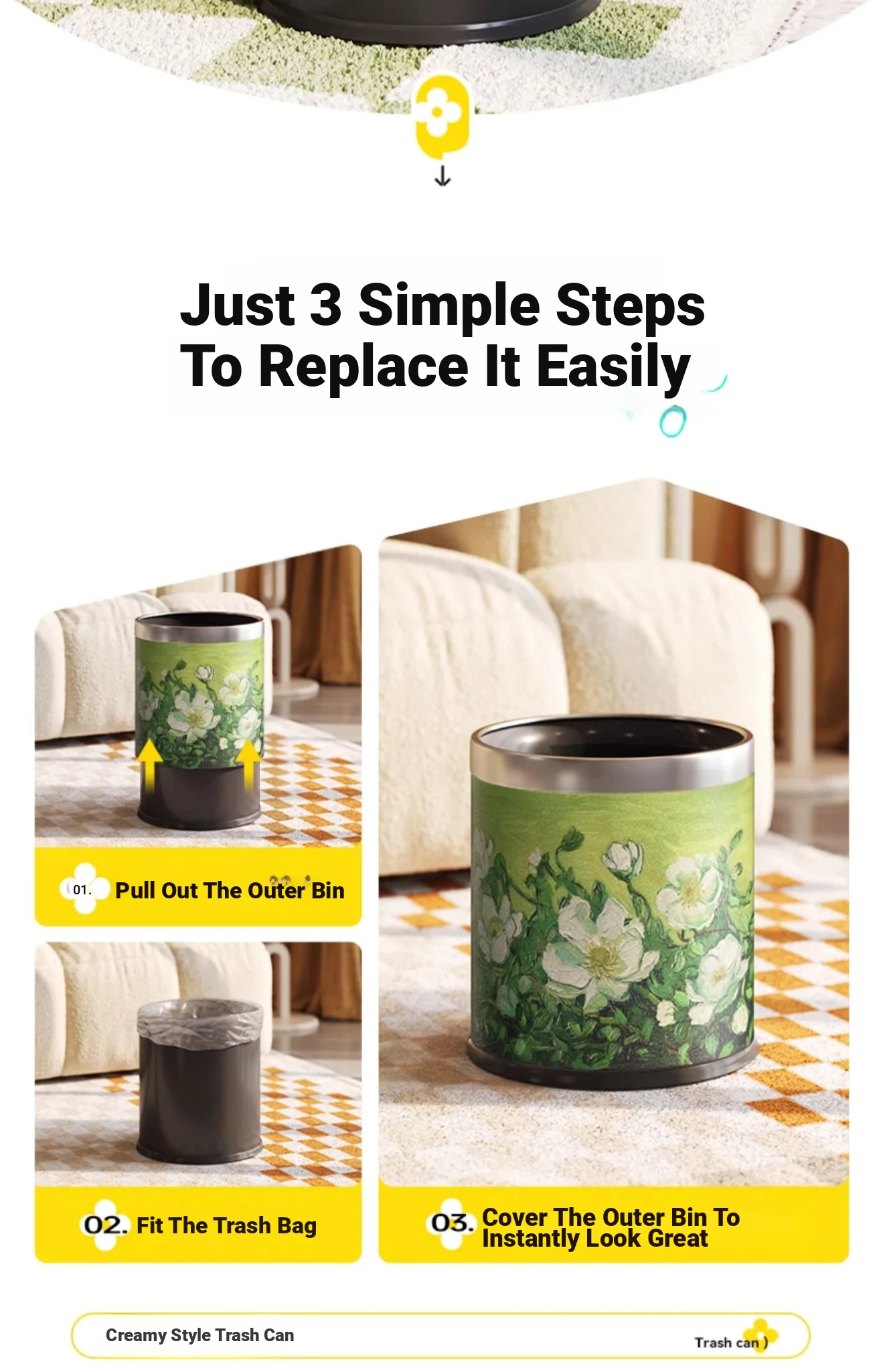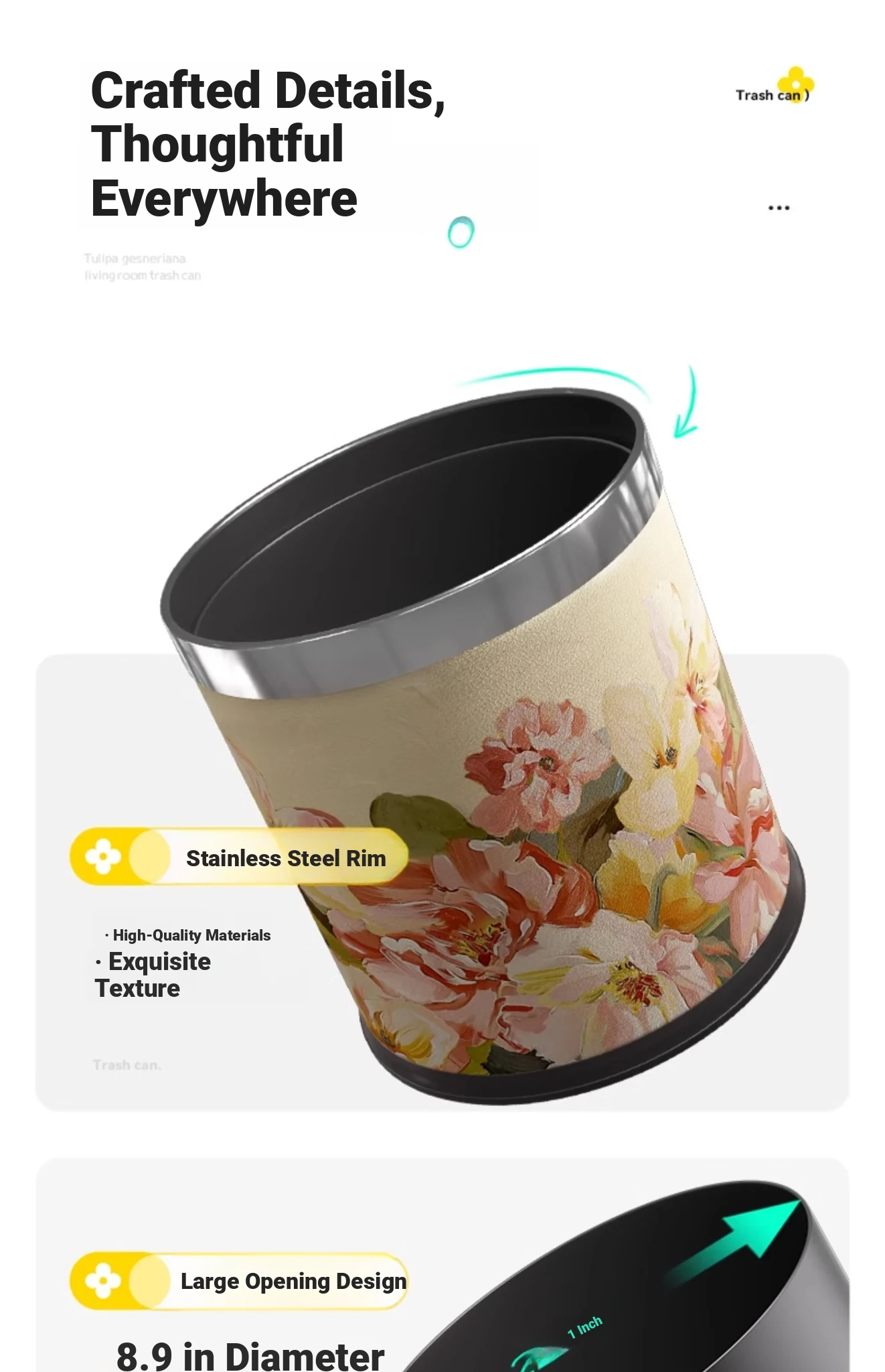 Meisida Vintage Floral Trash Can – Stylish and High-Quality Design for Home, Living Room, Bedroom, and Bathroom – Perfectly Blends Functionality with Aesthetic Appeal