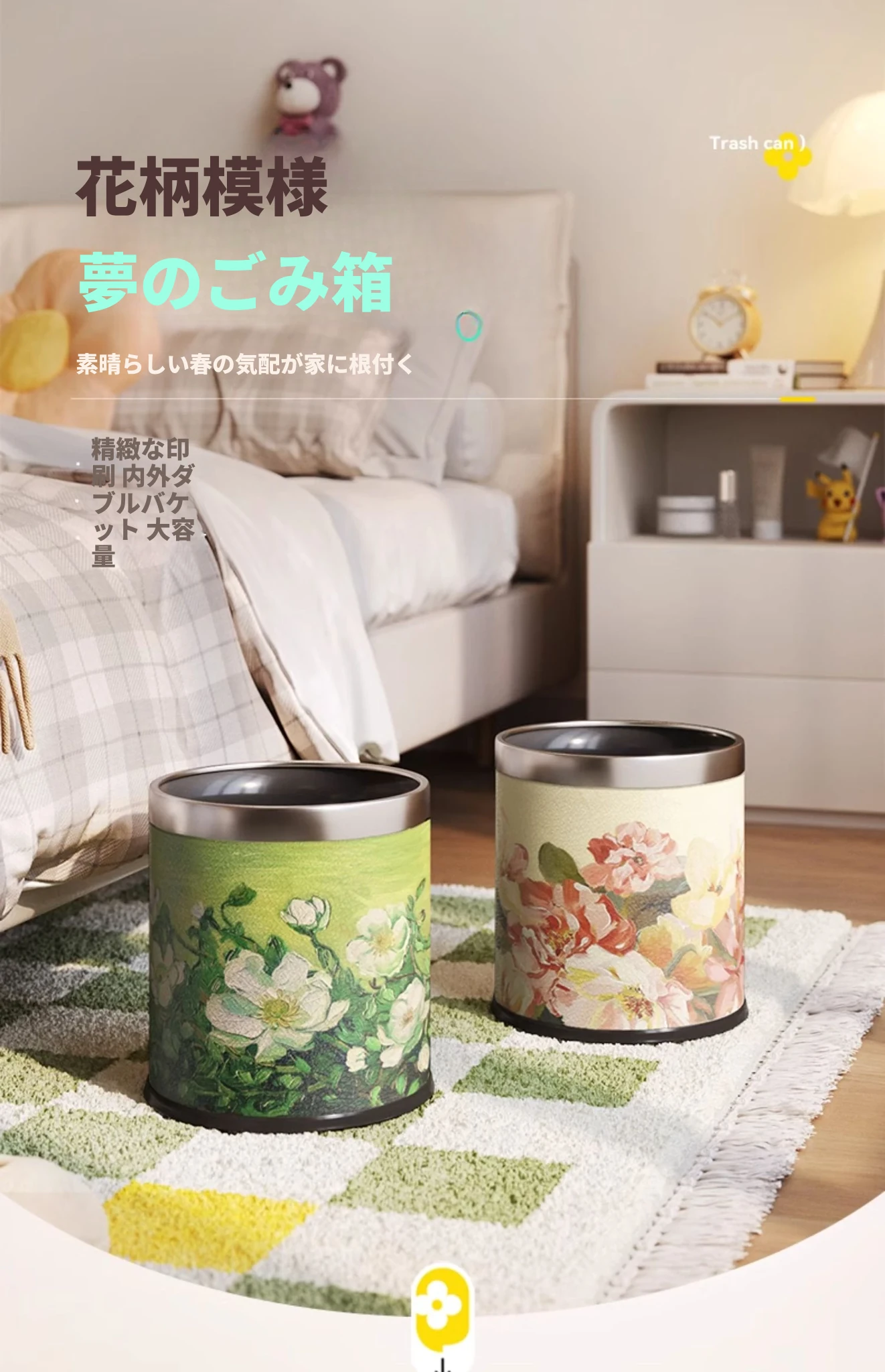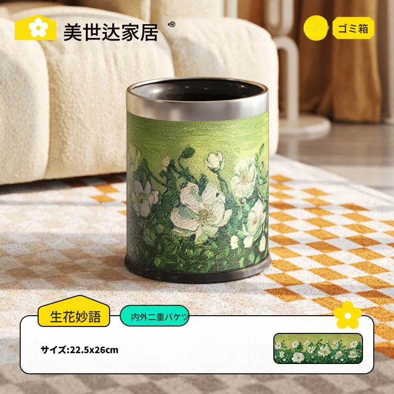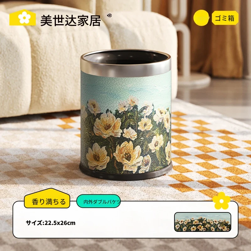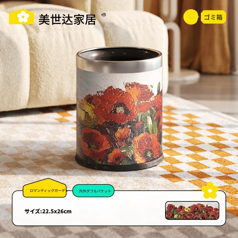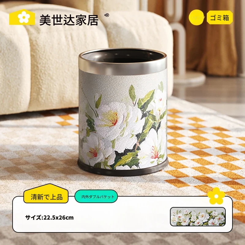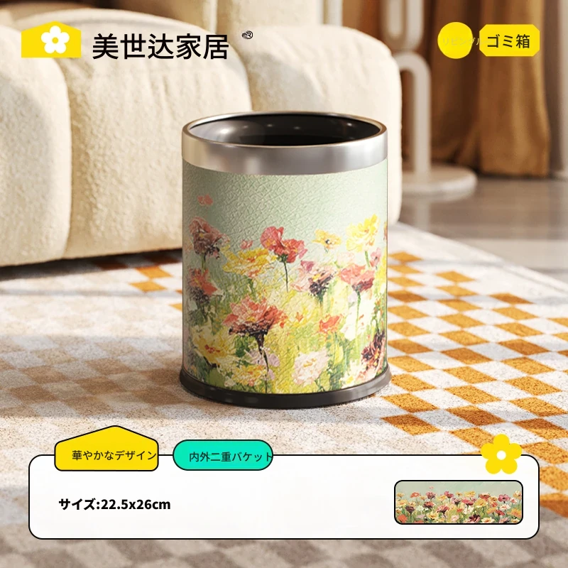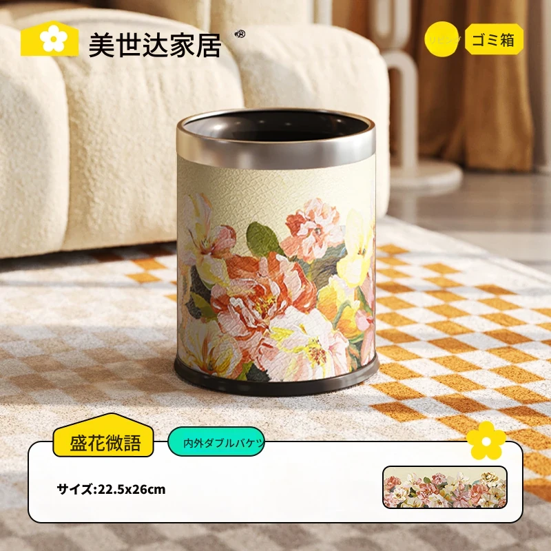 美世达レトロフラワーデザインの家庭用ゴミ箱 - 高級感溢れるリビング・寝室・バスルームにぴったり!おしゃれで実用的な新作、インテリアに彩りを加えます。