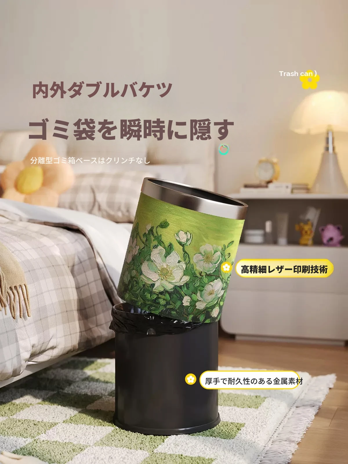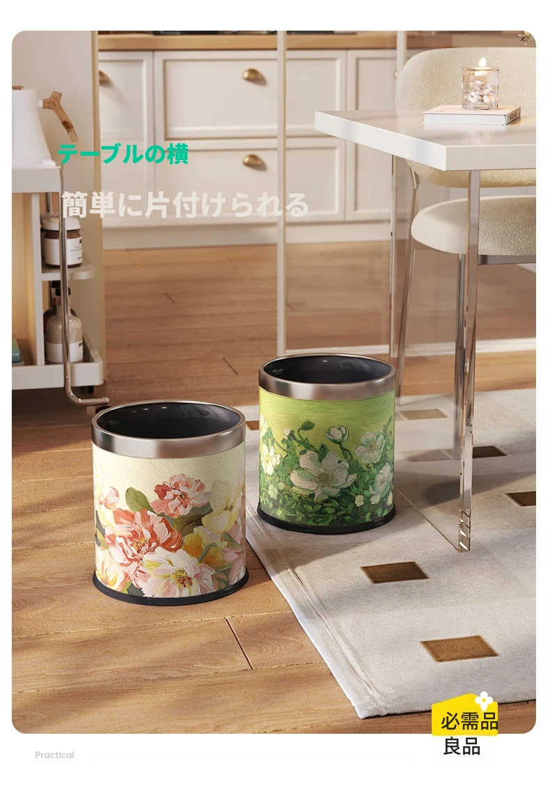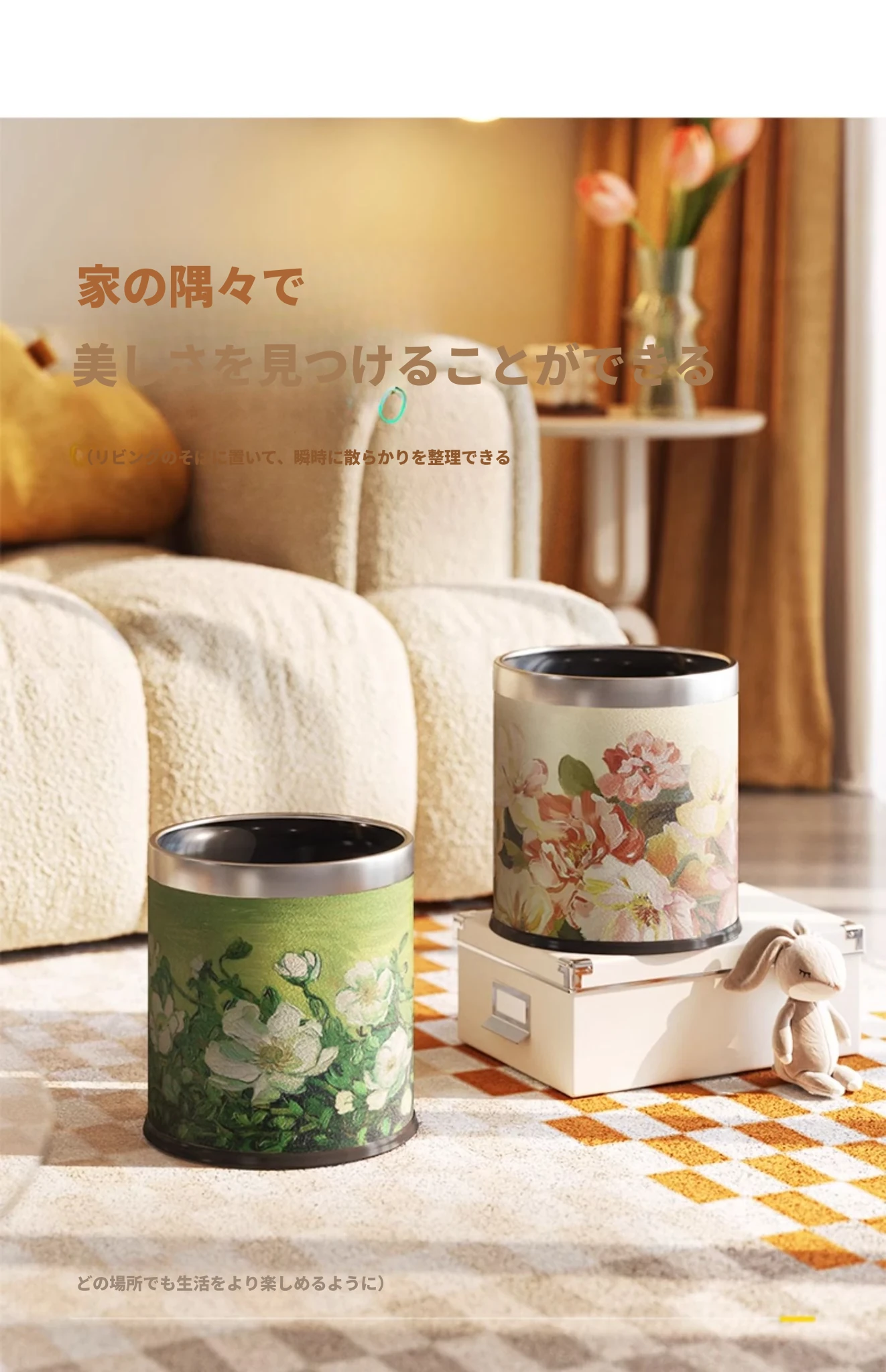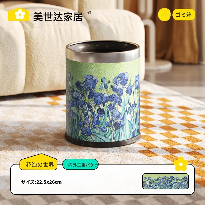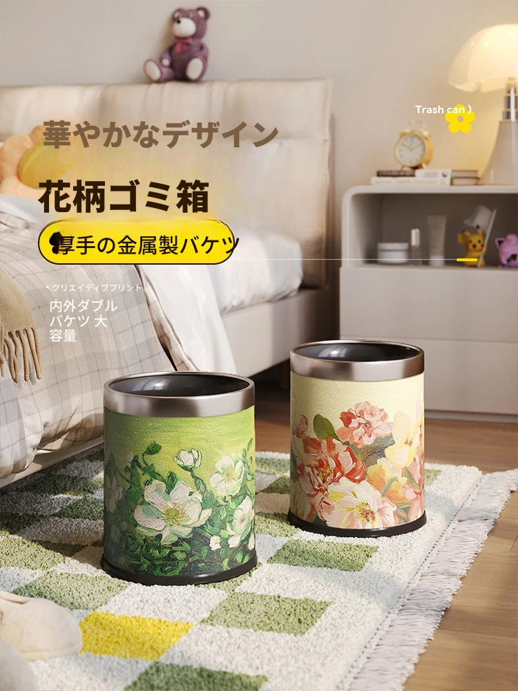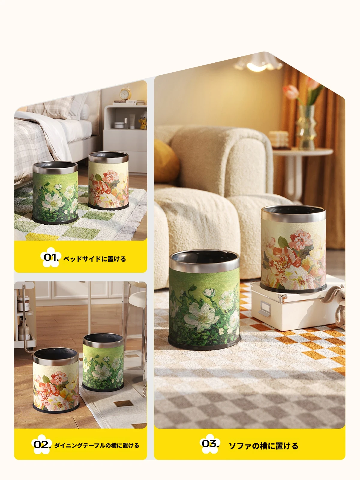 美世达レトロフラワーデザインの家庭用ゴミ箱 - 高級感溢れるリビング・寝室・バスルームにぴったり!おしゃれで実用的な新作、インテリアに彩りを加えます。