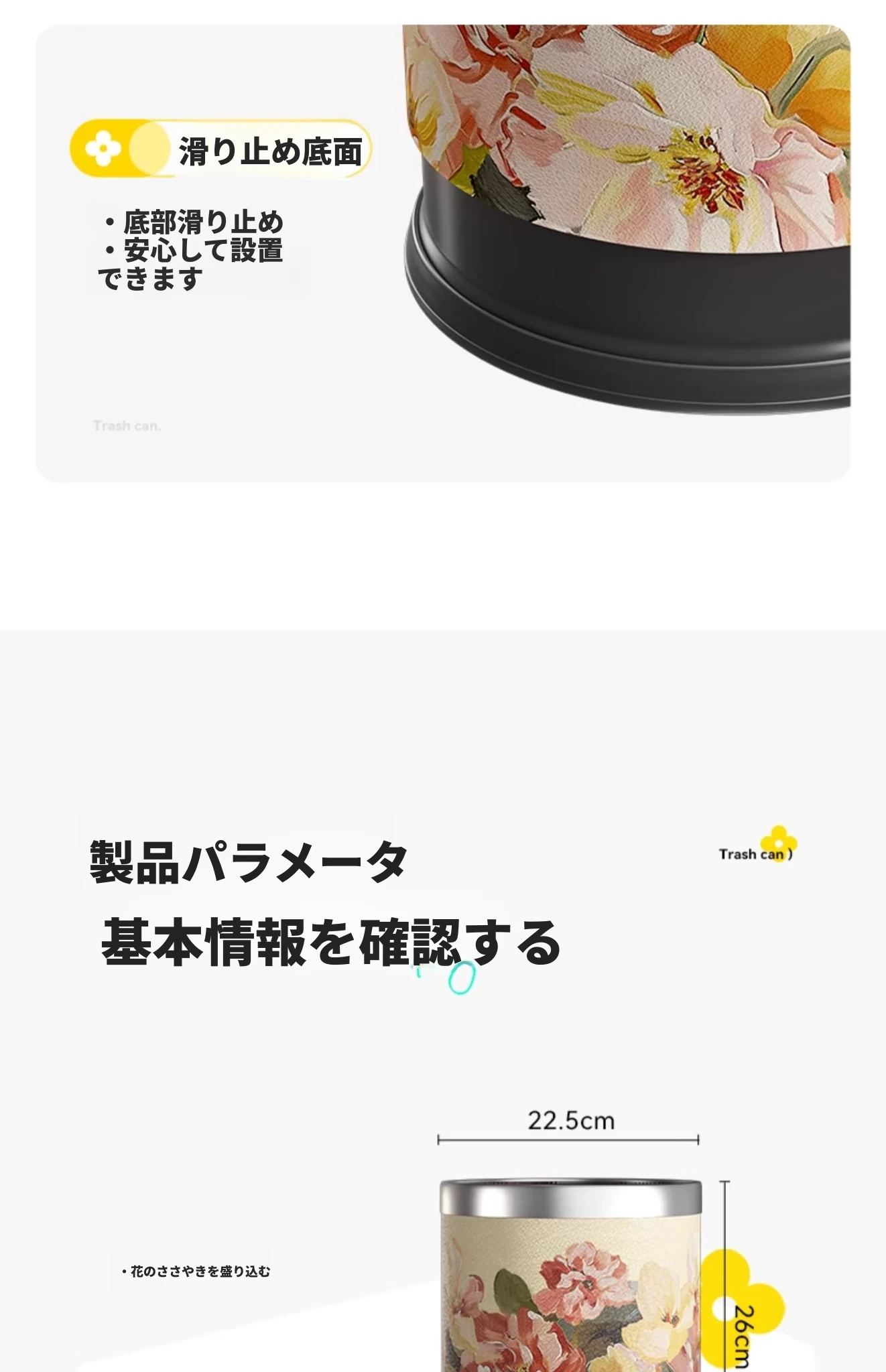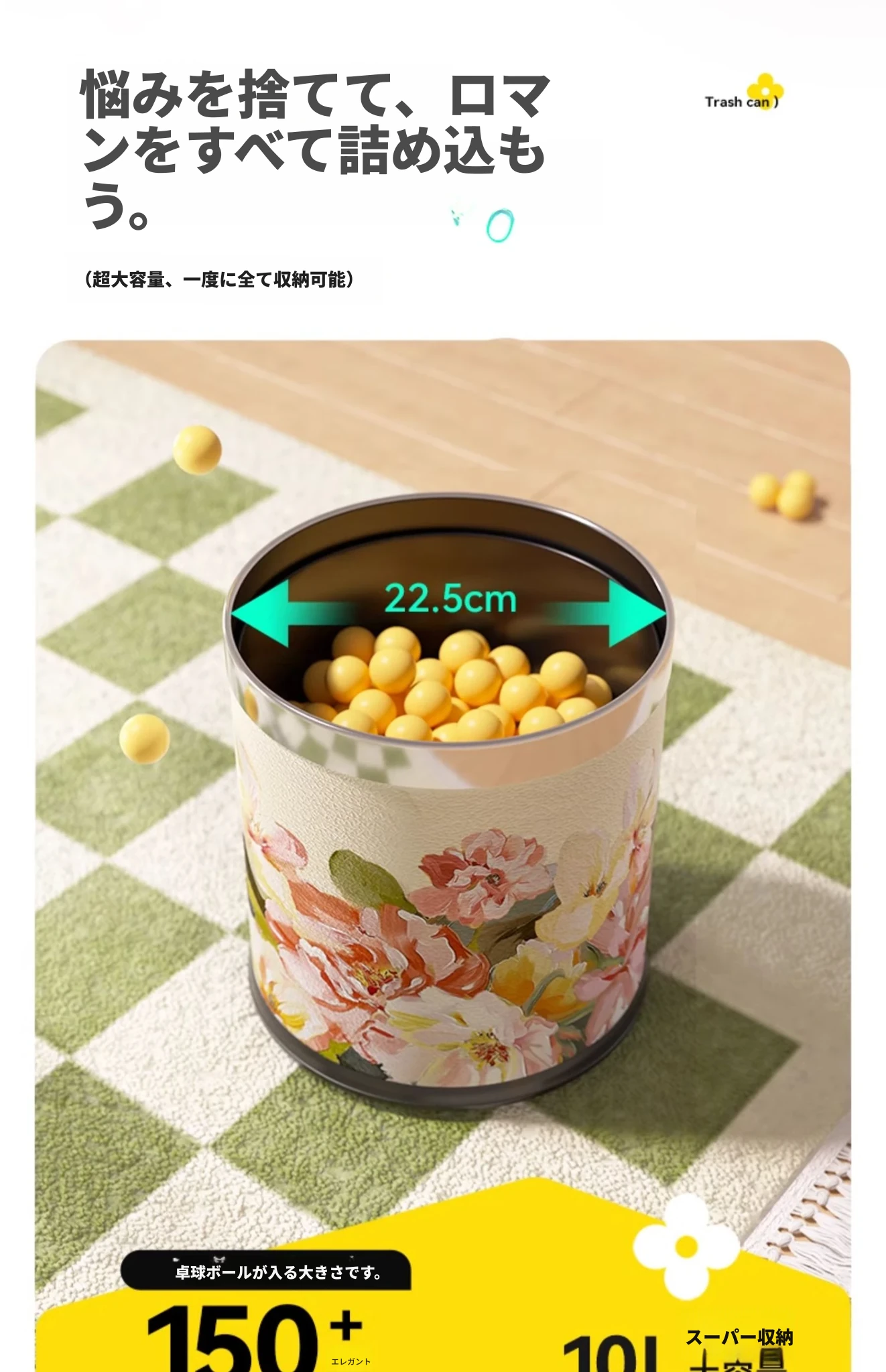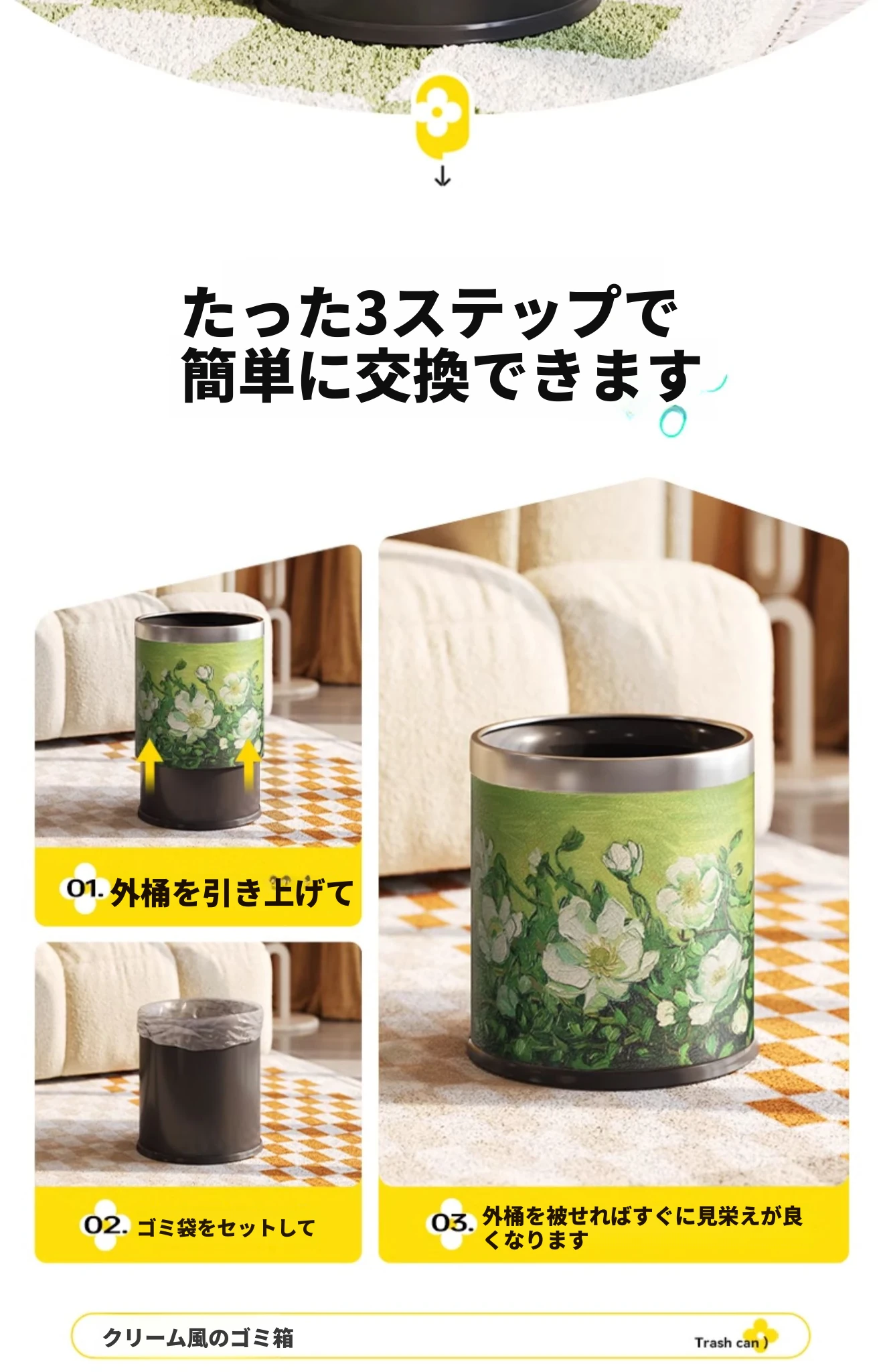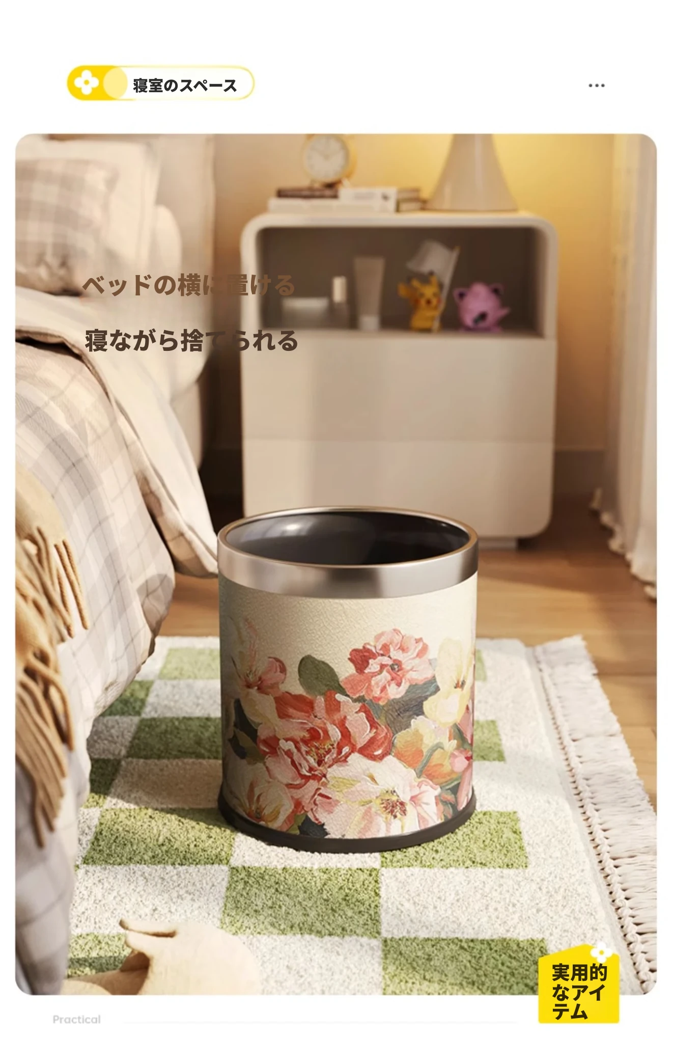美世达レトロフラワーデザインの家庭用ゴミ箱 - 高級感溢れるリビング・寝室・バスルームにぴったり!おしゃれで実用的な新作、インテリアに彩りを加えます。