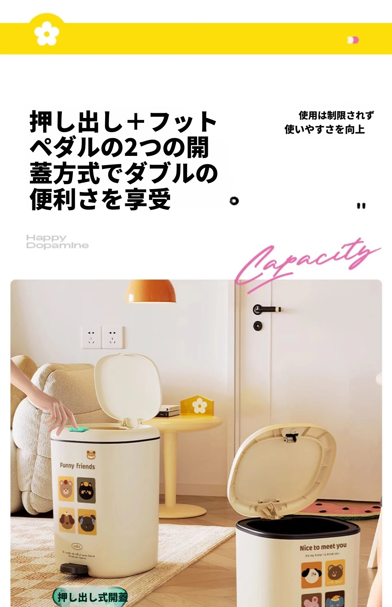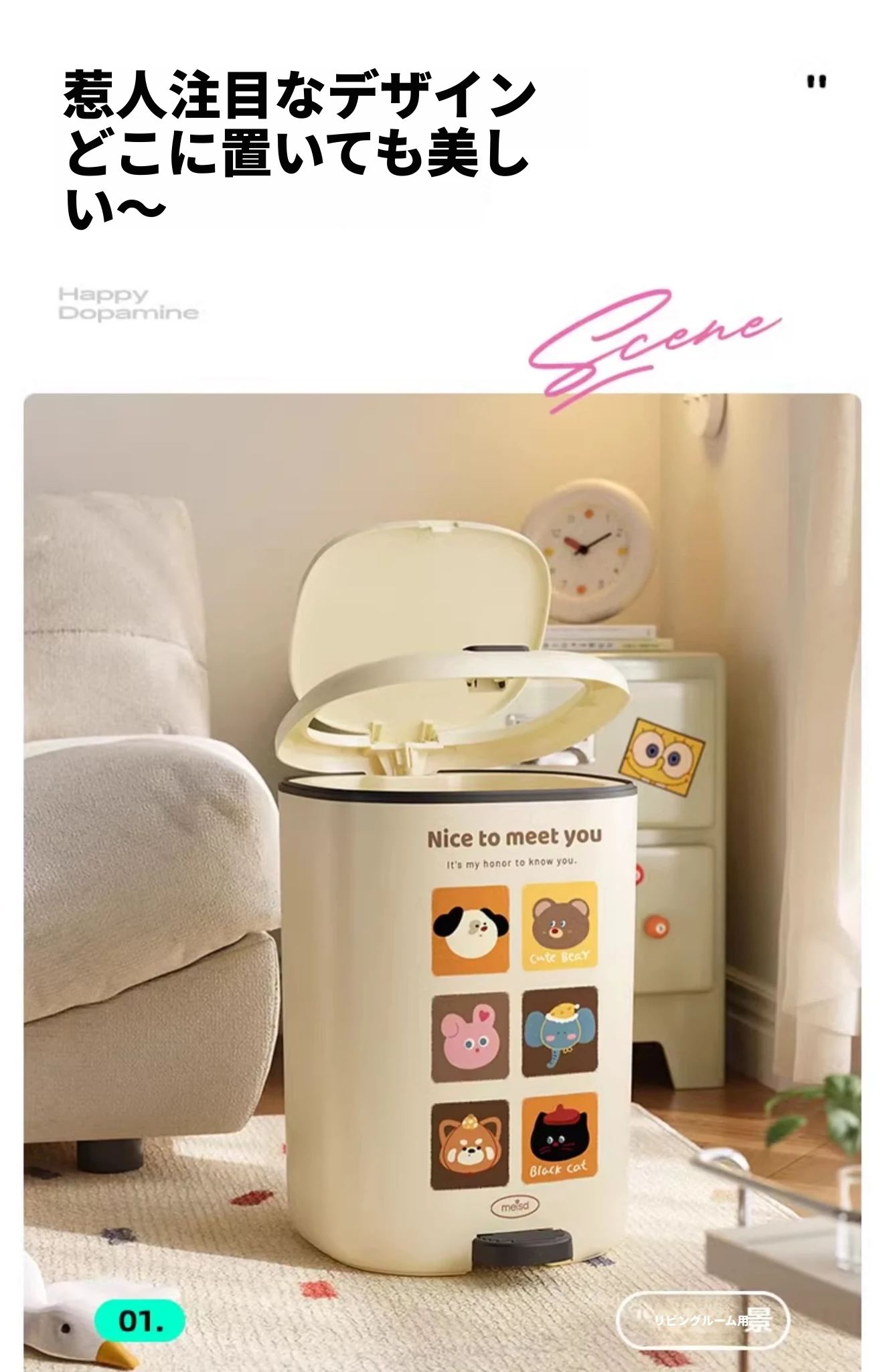 美世达2025年新款!おしゃれで大容量のフタ付きゴミ箱、ダブルペダルで使いやすい!リビングにもぴったりな高品質な衛生桶。暮らしを彩る一品をぜひご体験ください!