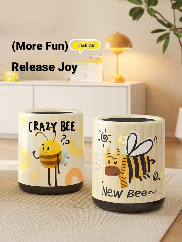 Meisida Cute Bee Trash Can - Stylish and Adorable Cream-Colored Large Capacity Waste Bin for Home, Perfect for Living Room and Bedroom