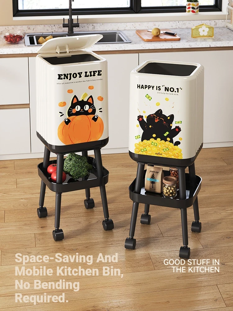 2025 New Stylish Kitchen Trash Can by Meisida – Hands-Free, Easy-Move Design with Lid for Home and Living Room Use, No Bending Required!