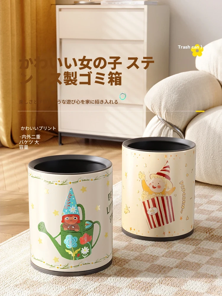 美世达ステンレス製ゴミ箱 家庭用 大容量 2025年新モデル リビング・寝室・キッチンに最適!かわいいデザインのアイアンバケツで、お部屋をおしゃれに演出!